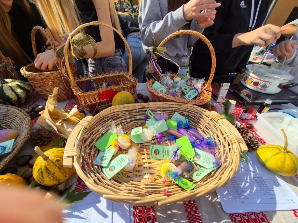 Vrijedne ruke naših učenica koji pohađaju dodatnu nastavu kemije i fakultativnu nastavu biologije izradile su prirodnu kozmetiku (kreme za ruke, sjajila za usne, sapune) te istu prezentirale na “Gastru” u subotu 11.10.2025.