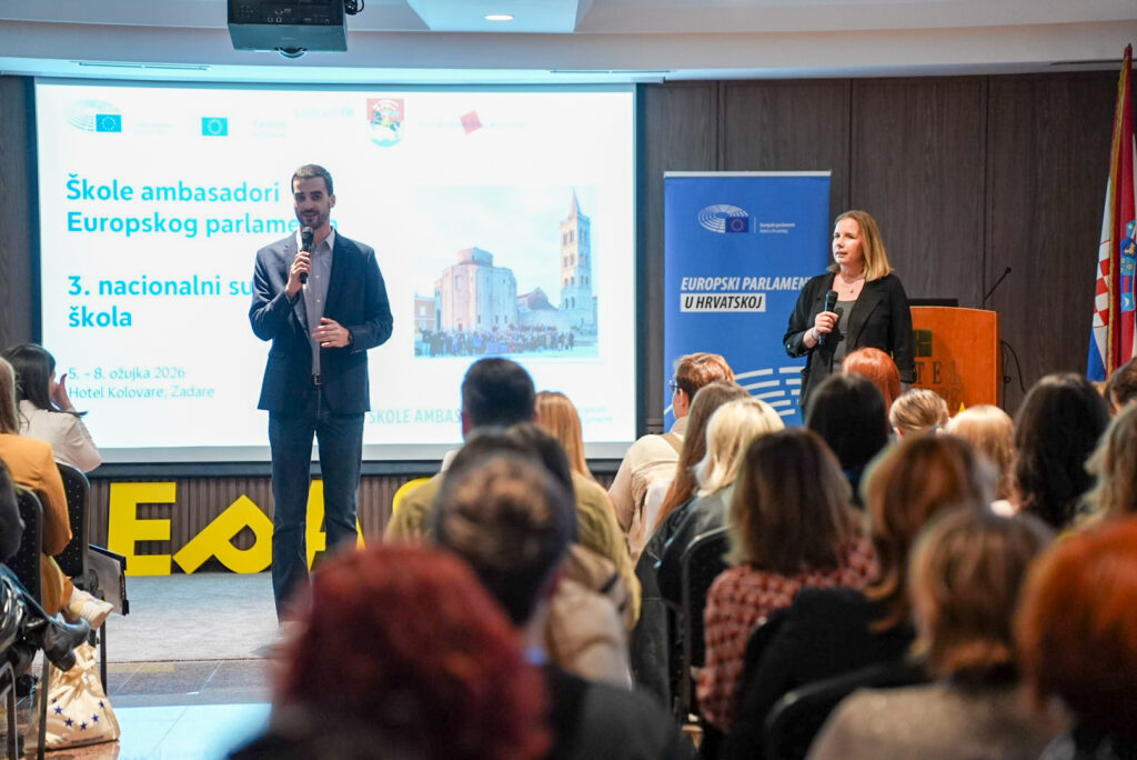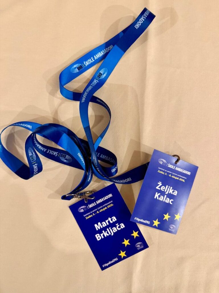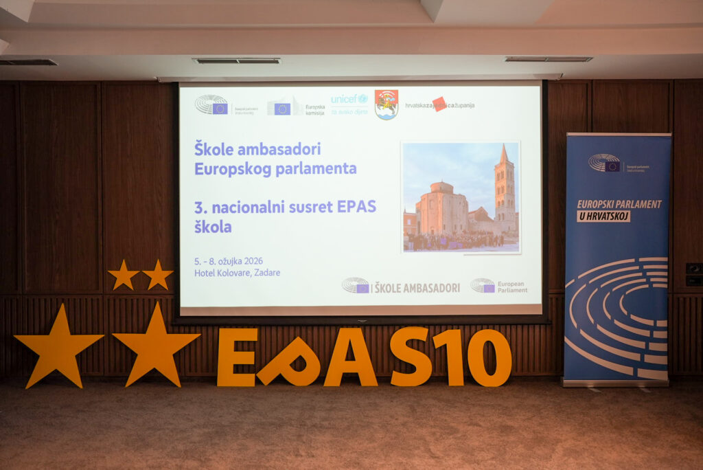 Od 5. do 8. ožujka 2026. godine u Zadru je održan 3. nacionalni susret Škola ambasadora Europskog parlamenta (EPAS) u organizaciji Ureda Europskog parlamenta u Hrvatskoj. Okupili su se predstavnici 60-ak srednjih škola iz cijele Hrvatske uključenih u EPAS program, a susret je bio posebno svečan jer EPAS program obilježava 10 godine provodbe. Našu školu predstavljale su profesorica Željka Kalac kao ambasador senior i učenica Marta Brkljača kao ambasador junior i koordinator za EPAS aktivnosti.