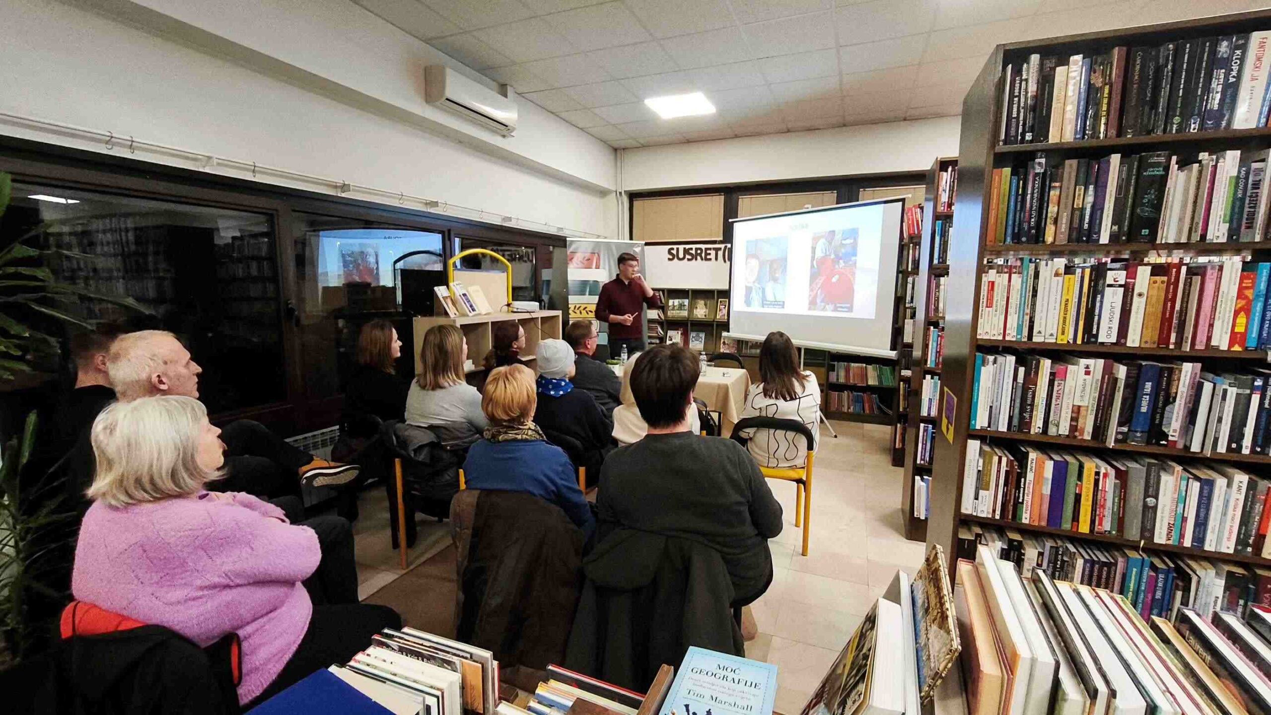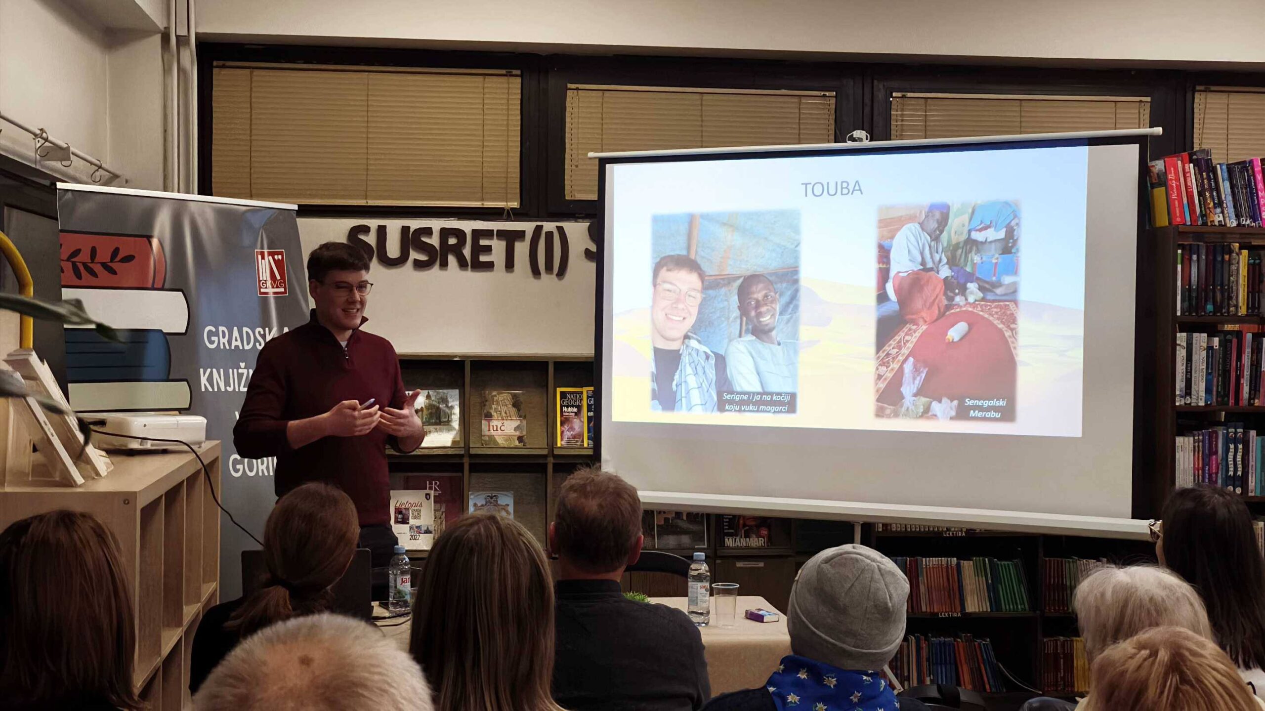 Posjetili smo sinoćnje predavanje mladog istraživača Andrije Pompera, koje je privuklo brojnu publiku zainteresiranu za manje poznate krajeve svijeta. Ovaj student geografije i novinarstva, koji je ranije istraživao Siriju i Afganistan, u veljači 2024. godine odlučio je istražiti prijelaznu zonu između Sahela i Sahare. Bilo je to dinamično izlaganje ispunjeno neobičnim i zanimljivim iskustvima s trotjednog putovanja.