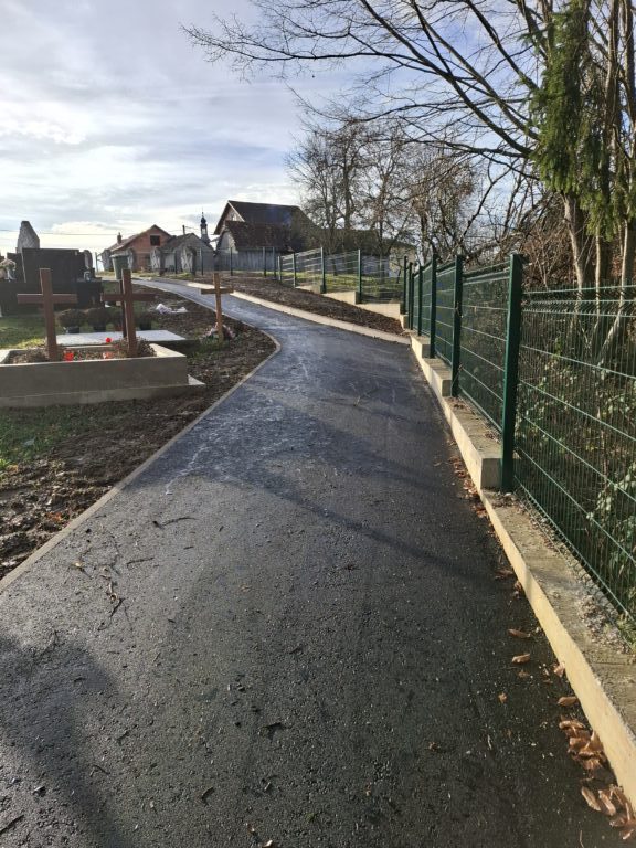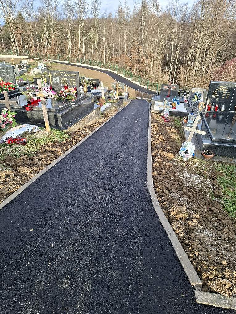 U sklopu projekta izvedeno je 350m2 novih asfaltiranih staza i ugrađeno 220 metara rubnjaka. Ovim rješenjem omogućen je pristup kolicima i manjim vozilima stražnjem dijelu groblja.