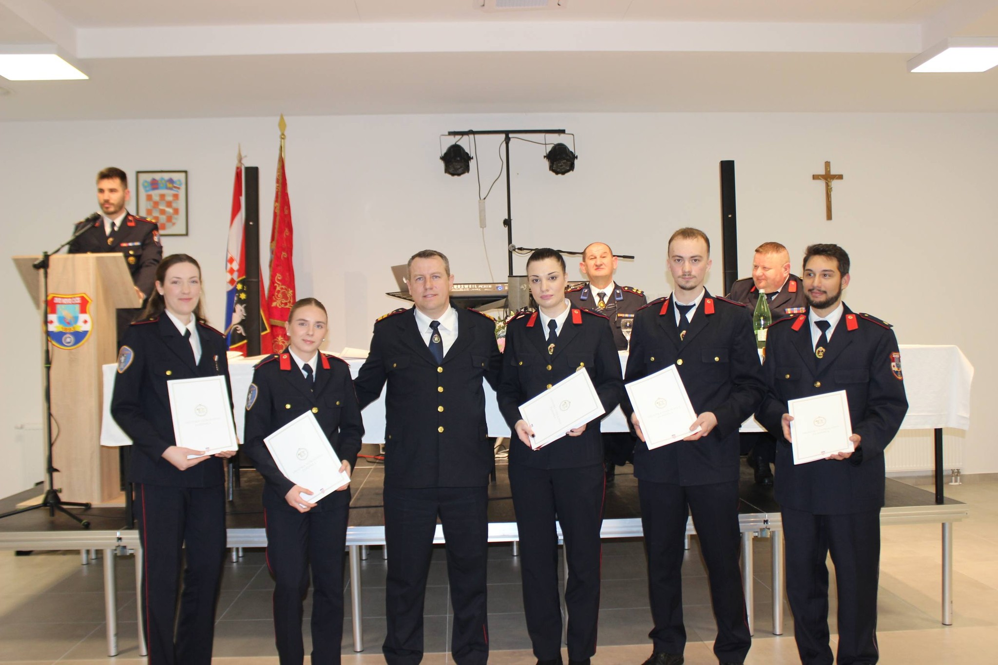 Uručena su i uvjerenja o uspješno završenim programima osposobljavanja. Za zvanje vatrogasnog časnika osposobljeni su Slaviša Čučuković i Antonio Munjić, dok je zvanje vatrogasnog dočasnika prve klase steklo pet članova, uključujući Marija Zetkovića i Nataliju Zarif. Uvjerenja je uručio zapovjednik JVP Velike Gorice Ivica Maceković, a pohvaljeni su i polaznici specijalizacija za spašavanje iz dubina i visina te rad s aparatima za zaštitu dišnih organa.