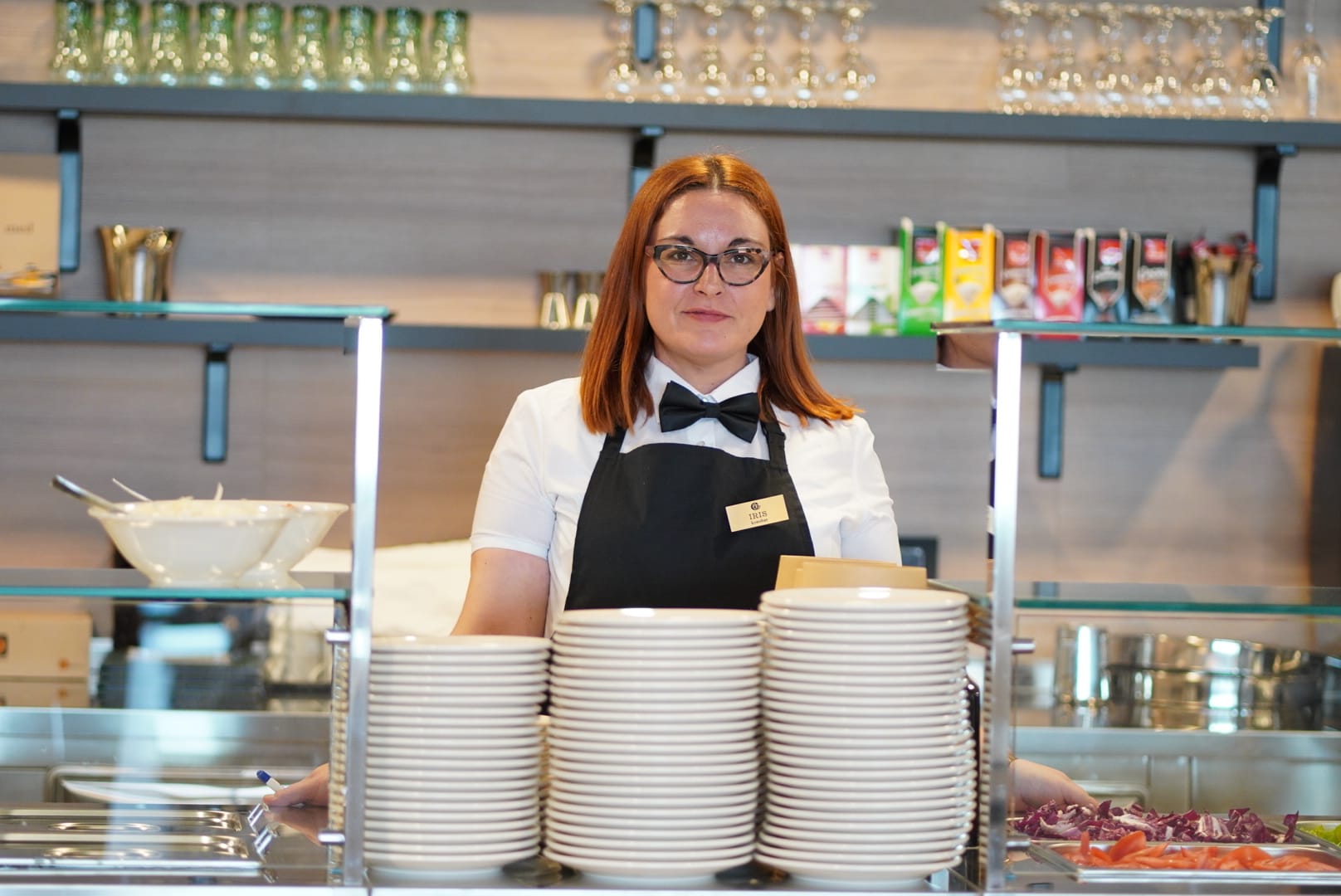 Uz trgovinu je otvoren i restoran s kapacitetom do 350 gostiju koji nudi pet vrsta dnevnih gableca te a la carte ponudu.