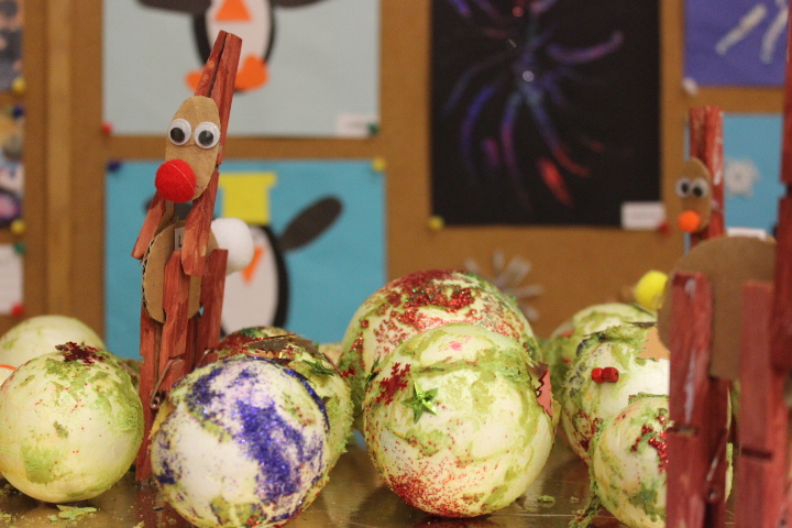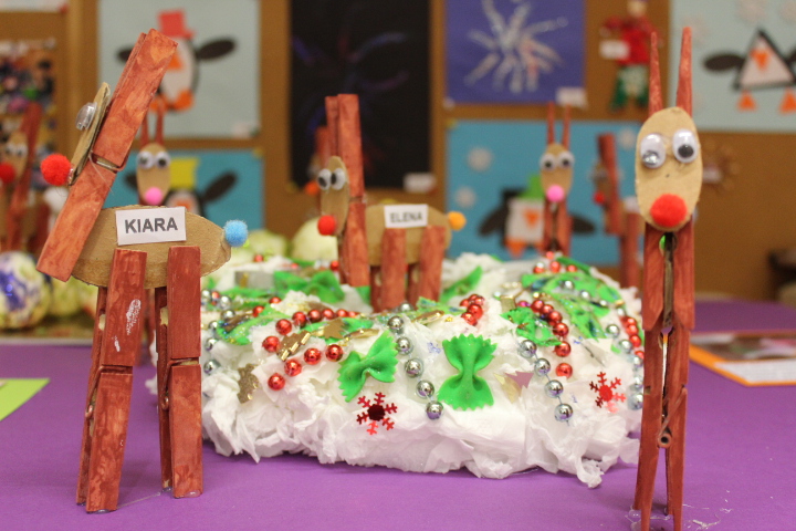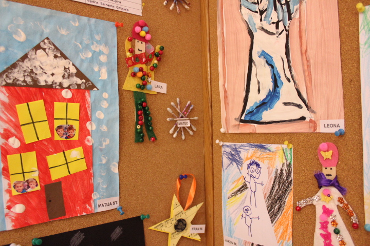 Dvadeset i osmero djece srednje vrtićke skupine (3-5 godina) izložilo je božićne radove na Dječjem odjelu Gradske knjižnice Velika Gorica. Razgovarali smo s njihovim mentoricama, djelatnicama Dječjega vrtića Žirek Martinom Cindrić, Bernardom Huzjak i Gabrijelom Banić.