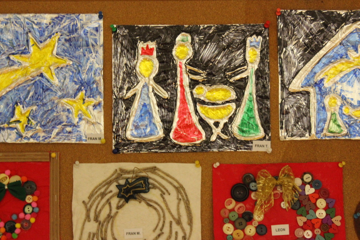 Djeca su Božić i ono što Božić za njih znači izrazila slikarskom (pastele, tempera, drvofix i hamer, ljepilo, glizeri, stare knjige, fotografije), crtačkom (flomasteri, bojice, tuš, markeri) i kiparskom tehnikom (alu-folija, vuna, karton, žica, blazinice, špaga, pvc, perle, gumbi, stiropor).