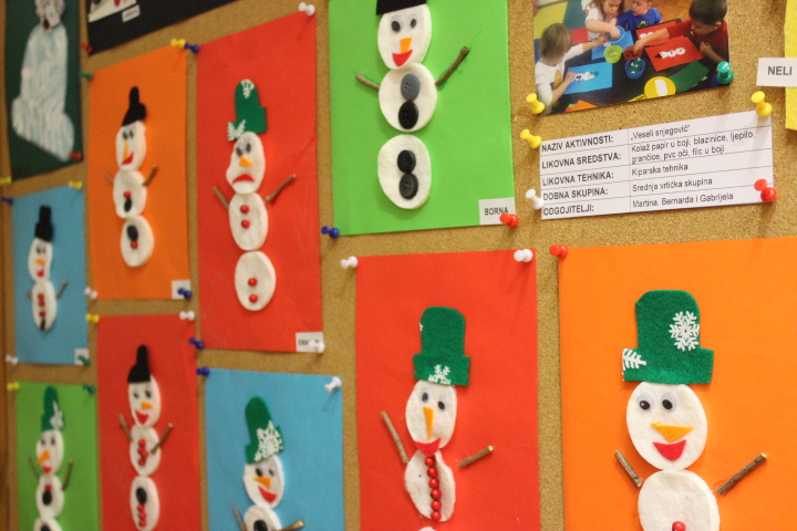 – Skupili smo bogatstvo materijala, ali morate imati neku shemu. Primjerice, tema je kuća, kuća ima svoje dijelove, od kojih je jedan ključanica. Kad pada snijeg, radimo snjegoviće. Izbjegavamo šablone. Nastojali smo da im bude različito, dinamično i zanimljivo – nadovezuje se Gabrijela.