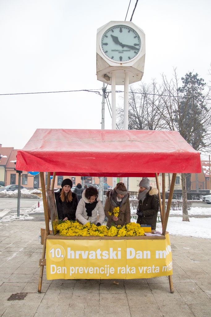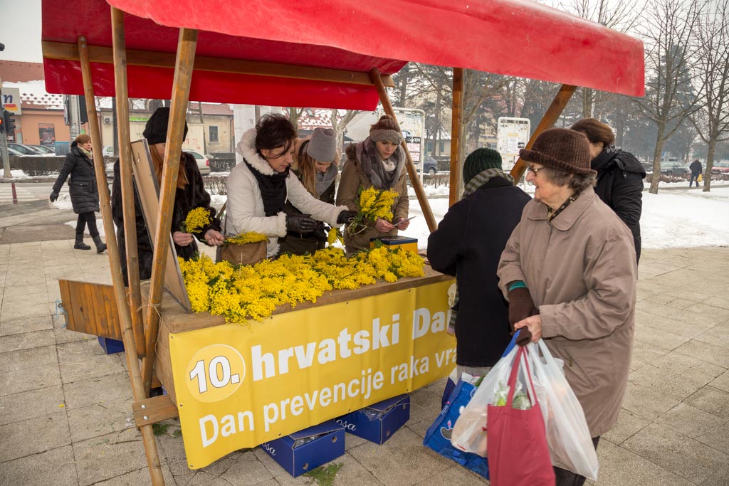 Pokraj Tržnog centra Velika Gorica danas se održava peti velikogorički Dan mimoza. Akciju su organizirali djelatnici Veleučilišta Velika Gorica u suradnji s Gradom Velikom Goricom, Hrvatskom ligom protiv raka, Poliklinikom Zahi te Udrugom Zdravka. Ova se akcija u Hrvatskoj održava već 10 godina, a u humanitarne svrhe prodaju se buketi mimoza. Ove godine je u Velikoj Gorici pripremljeno 400 buketa koji se prodaju po cijeni od simboličnih deset kuna. Ovom akcijom želi se ukazati na problematiku karcinoma vrata maternice i ginekoloških problema općenito. – Mi smo ove godine nabavili oko 400 komada, deset kuna je humanitarna cijena i nadamo se da ćemo sve uspjeti prodati i pomoći radu Lige za hrvatsku borbu protiv raka – rekla nam je Sanja Kalambura, profesorica s Veleučilišta Velika Gorica.
