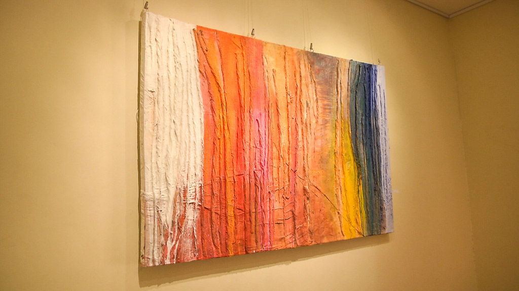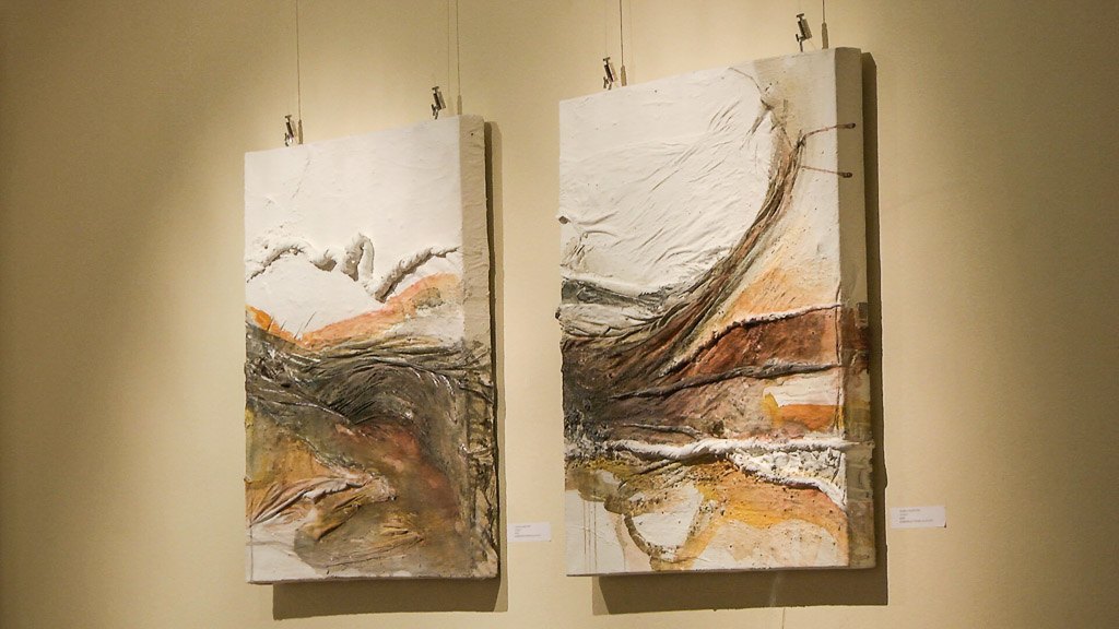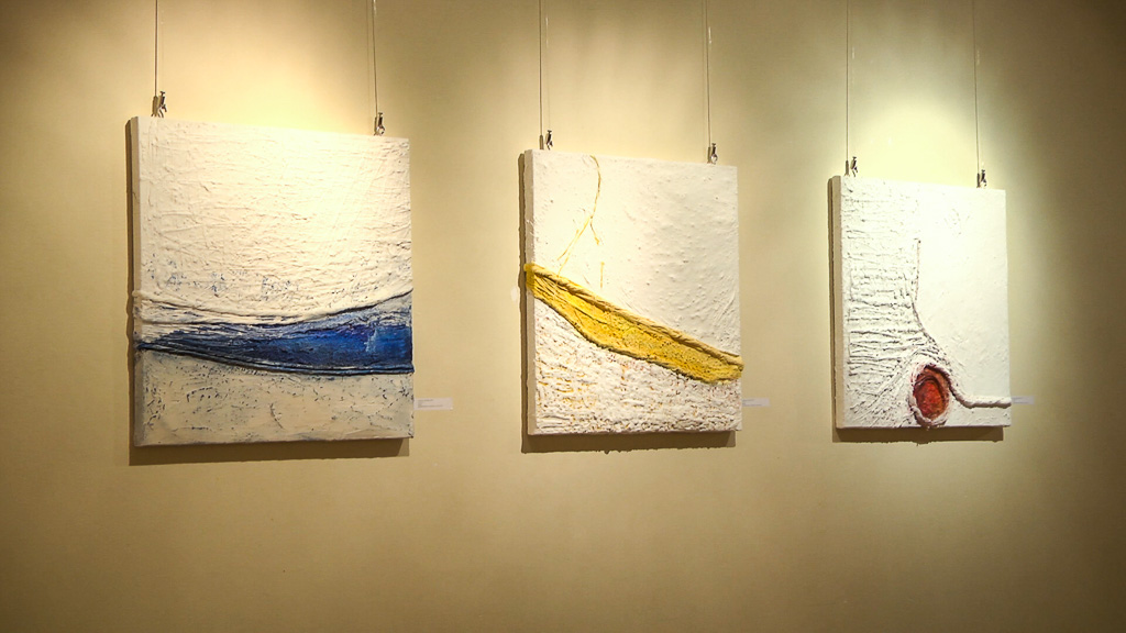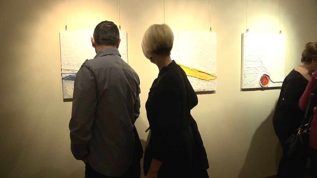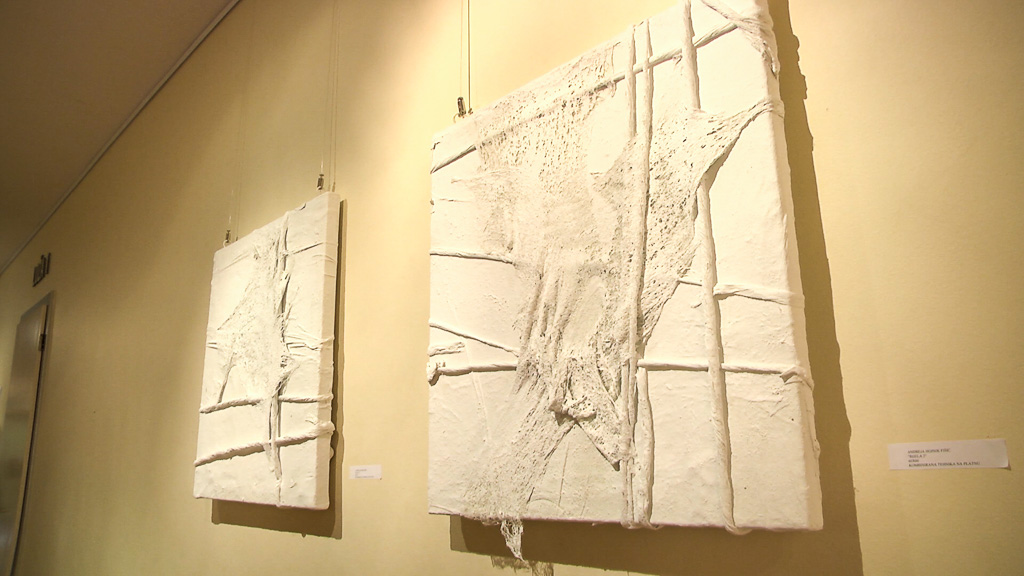 Potpuno drugačije radove izložila je slikarica Andreja Hojnik Fišić. Bijele slike koje su ukrašene većinom jednom bojom nastaju vrlo zanimljivom tehnikom. – To su vam cementne slike. Radim s bijelim cementom, zidarskim na platnu, ali nekada i bez platna s time da mi je vezivo tekstil, materijal koji je jako, jako tanak i koji onda obrađujem na svoj način jer sam već 20 godina u traženju nekakvih formi na taj način. Poslije nekog vremena dobijete rutinu izrade svakojakih oblika na taj način i to je jedino što vam treba, platno, cement i malo tekstila – objasnila je Andreja Hojnik Fišić.