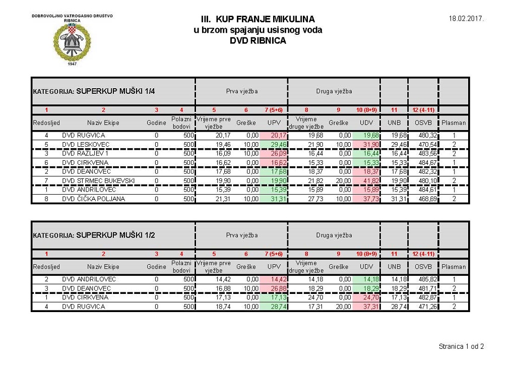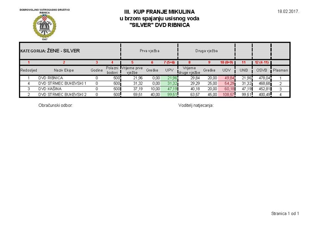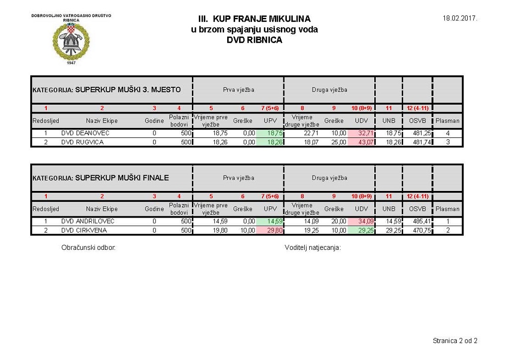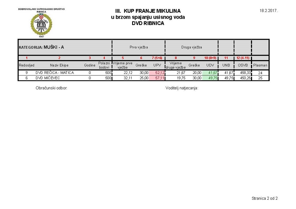 – Zadovoljan sam natjecanjem i mogu pohvaliti sve naše članove koji su odradili veliki posao organizacije. Hvala i svim ekipama na dolasku i vjerujem da ćemo sljedeće godine biti još bolji, jer uvijek treba težiti boljem i uspješnijem – istaknuo je Stjepan Vrban, predsjednik DVD-a Ribnica.