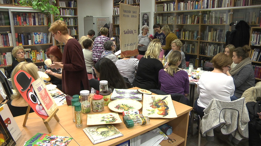 U Gradskoj knjižnici Velika Gorica u Središnjem odjelu za odrasle sinoć je održana radionica vještina ukrašavanja staklenih predmeta decoupage tehnikom. Radionicu je vodila kreativna Velikogoričanka Katica Ivaci koja je okupljenim ženama pokazala sve što zna, davala im savjete te im rekla mnoge cake kako napraviti najljepši decoupage.