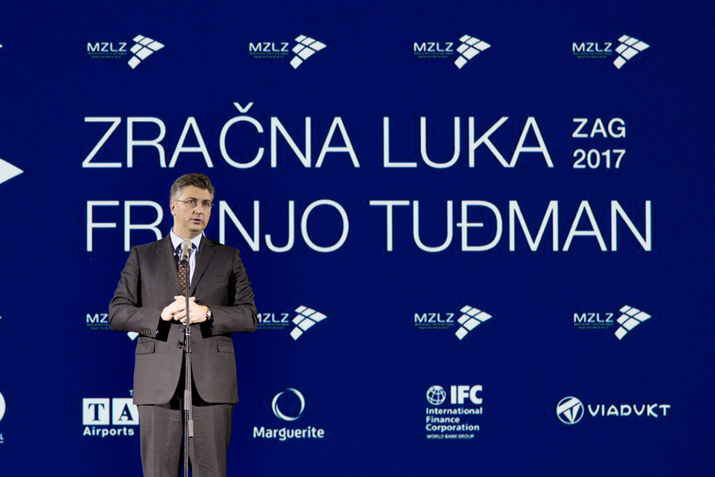 Premijer Andrej Plenković se zahvalio arhitektima Velimiru Neidhardtu, Branku Kinclu te Juri Radiću, svim hrvatskim vladama koje su pridonijele realizaciji ovog projekta te koncesionarima jer je zahvaljujući novom terminalu zračni promet stavljen na višu razinu. – Prekrasno arhitektonsko rješenje koji je, siguran sam, od Međunarodne zagrebačke luke stvorilo impresivno zdanje koje će biti zaista prava vrata moderne suvremene Hrvatske. Uvjeren sam da bi prvi hrvatski predsjednik bio izuzetno ponosan da je večeras ovdje i da vidi kakvu Zračnu luku Zagreb dobiva danas – poručio je Plenković.