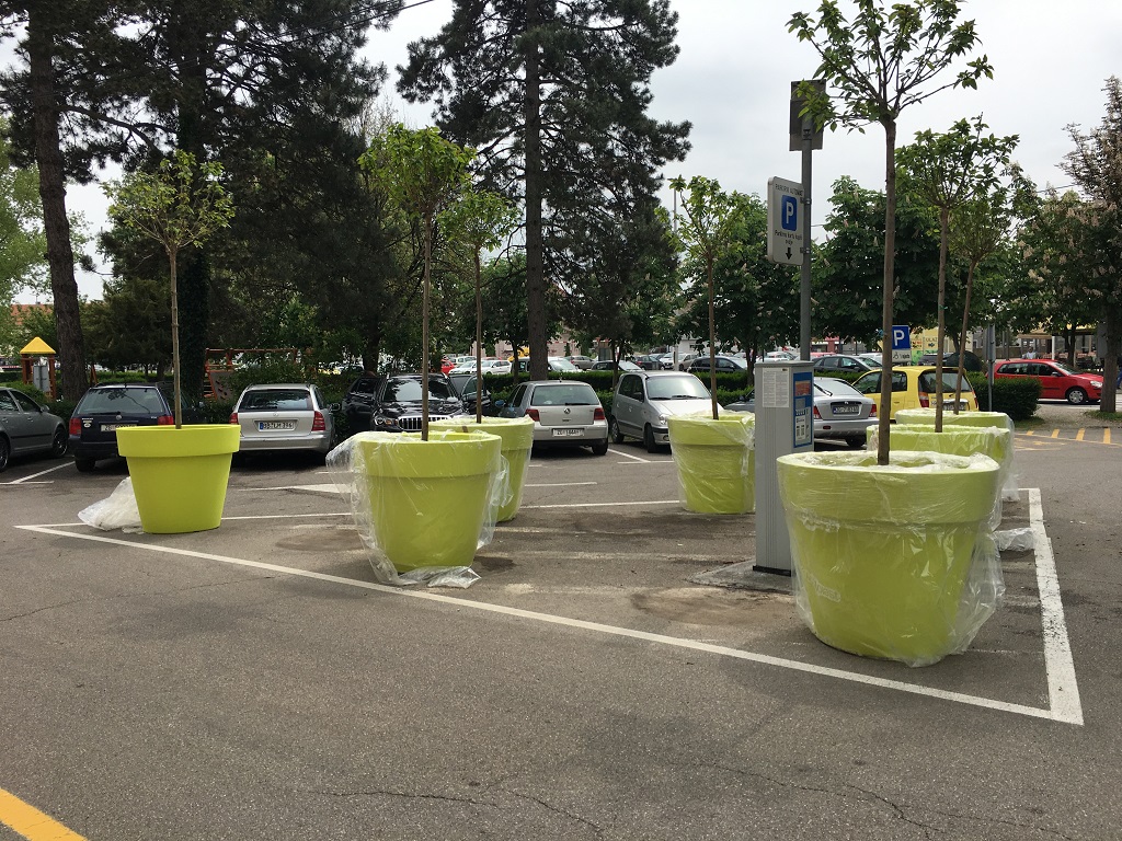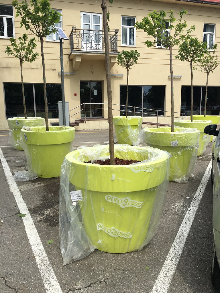 Trenutno je postavljeno sedam tegli u kojima su zasađene katalpe te se postavlja šest tegli s pendulastim brezama. Djelatnica VG Komunalca nam je ispričala kako će se još postaviti i pet tegli kuglastih liquidambara na Trgu kralja Tomislava, ali uz cestu.