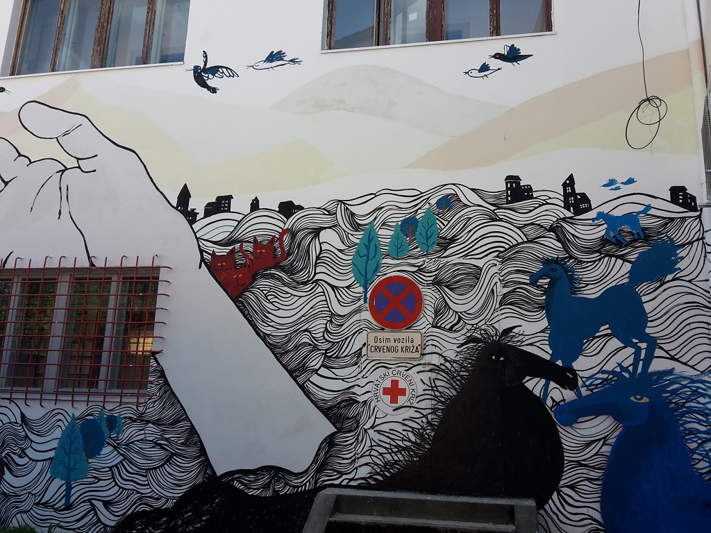 Udruženim snagama, dvoje mladih ilustratora Hana Tintor, mag. dizajna vizualnih komunikacija i Dominik Vuković, mag. grafike, oslikali su dvorišni zid zgrade u kojoj su se smjestili velikogorički Crveni križ, političke stranke i brojne gradske udruge.