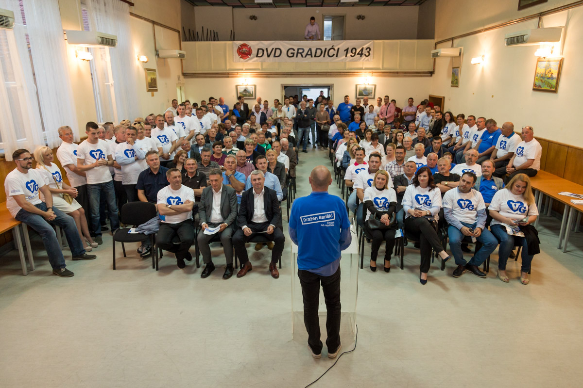 – Odgovorno tvrdim da smo izvršili sve obećano i sve će biti napravljeno za našu Veliku Goricu. Jučer smo položili kamen temeljac za izgradnju logističkog centra Hrvatske pošte gdje će biti otvoreno 1 800 novih radnih mjesta. Čeka nas izgradnja Hrvatskog veterinarskog instituta vrijednog sto milijuna kuna te početak Aglomeracije već u rujnu i listopadu vrijedno 500 milijuna kuna, 70 posto se financira iz eu fondova, a 30 posto iz gradskog proračuna – naglasio je Barišić.-U ovih nekoliko dana kampanje zadovoljni smo viđenim i velikom podrškom koju smo dobili od naših članova iz koalicijskih stranaka na čelu s HDZ-om kao i od simpatizera koji nisu opredijeljeni, pa čak i od članova drugih stranaka koji su rekli da radimo dobro, kvalitetno i da smo doista ljudi od rezultata – rekao je Dražen Barišić koji vjeruje u pobjedu svoje koalicije već u prvom krugu te osvajanje trećeg mandata za gradonačelnika Velike Gorice.– Sve ono što je napravljeno, a napravljeno je puno, daje nam osnovu i temelj da možemo tražiti povjerenje u naredne četiri godine i oni rezultati koje smo napravili nam daju mogućnost i povjerenje od naših sugrađana da dobijemo vlast u gradu i da je obnašamo i naredne četiri godine. Minimalno za većinu u Gradskom vijeću treba 16 gradskih vijećnika, a mi očekujemo i puno više od toga i očekujem već ove nedjelje da se riješe izbori u Velikoj Gorici kako bismo odmah počeli raditi i ne bismo gubili vrijeme, ali ni novac za drugi krug – rekao je BarišićPozvao je sve birače da izađu u nedjelju na birališta, izražavajući poštovanje prema svakoj konkurenciji te je sve pozvao da” u duhu tolerancije i civilizacijskom duhu međusobnog uvažavanja bude do samoga kraja, posebice na dan šutnje”.