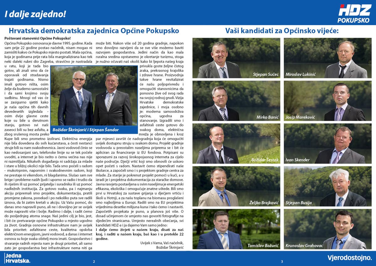 Još uvijek aktualni načelnik općine Pokupsko, Božidar Škrinjarić lovi novi mandat na čelu ove, jedne od najrazvijenijih velikogoričkih općina. Program s kojim izlaze na izbore temelji se na još snažnijem razvoju gospodarstva, pozicioniranju turizma na rijeci Kupi, kao i brojnim infrastrukturnim projektima, a što će u konačnici rezultirati otvaranjem novih radnih mjesta, ali i ugodnijem životu u Pokupskom, rekao je Škrinjarić.