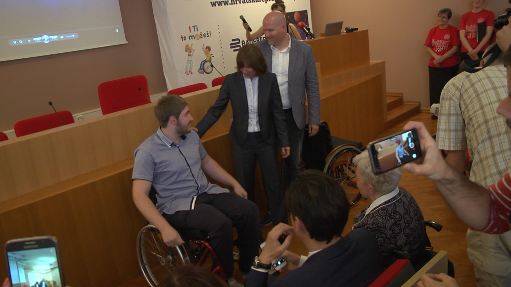 U sklopu akcije “21 kolica za sport” Udruga Hrvatska reprezentacija mladim hrvatskim sportašima dodjeljuje invalidska kolica kako bi im se olakšalo bavljenje sportom. Akcija je započela prošle godine te će 21 sportaš, po jedan iz svake županije, dobiti vlastita kolica po mjeri. U Zagrebačkoj županiji kao najperspektivniji sportaš izabran je 16-godišnji Dominik Počekal, atletičar velikogoričkog Atletskog kluba osoba s invaliditetom USPON. Jučer su mu, na svečanoj dodjeli, kolica uručena, a Dominik ih je odmah isprobao.