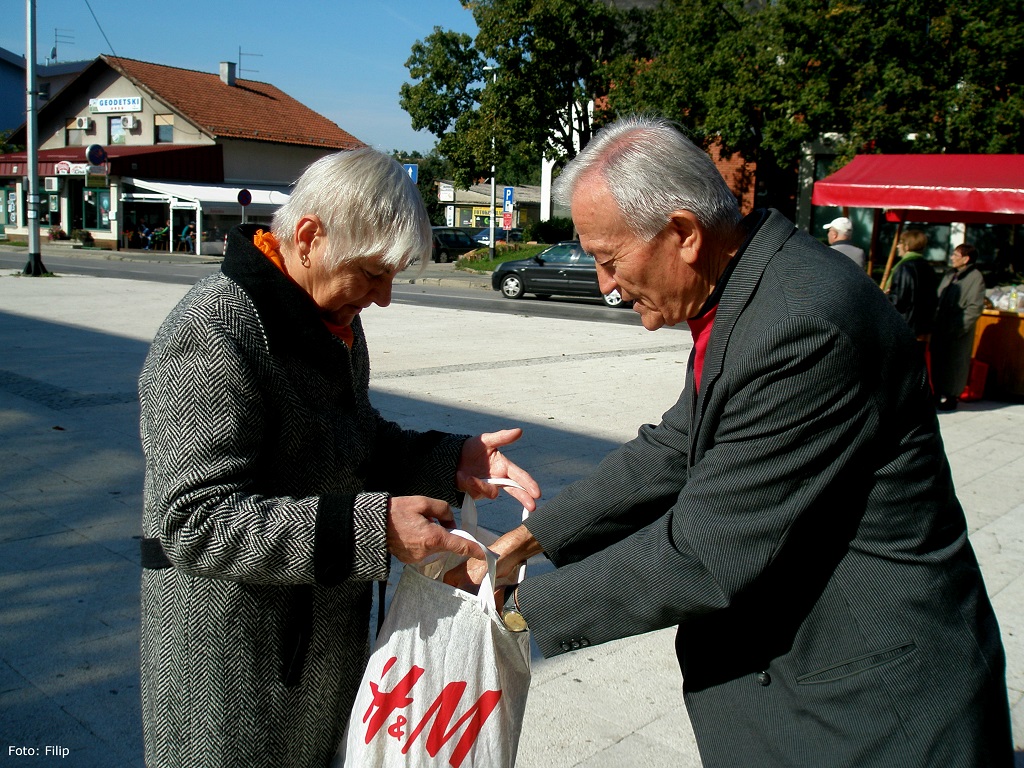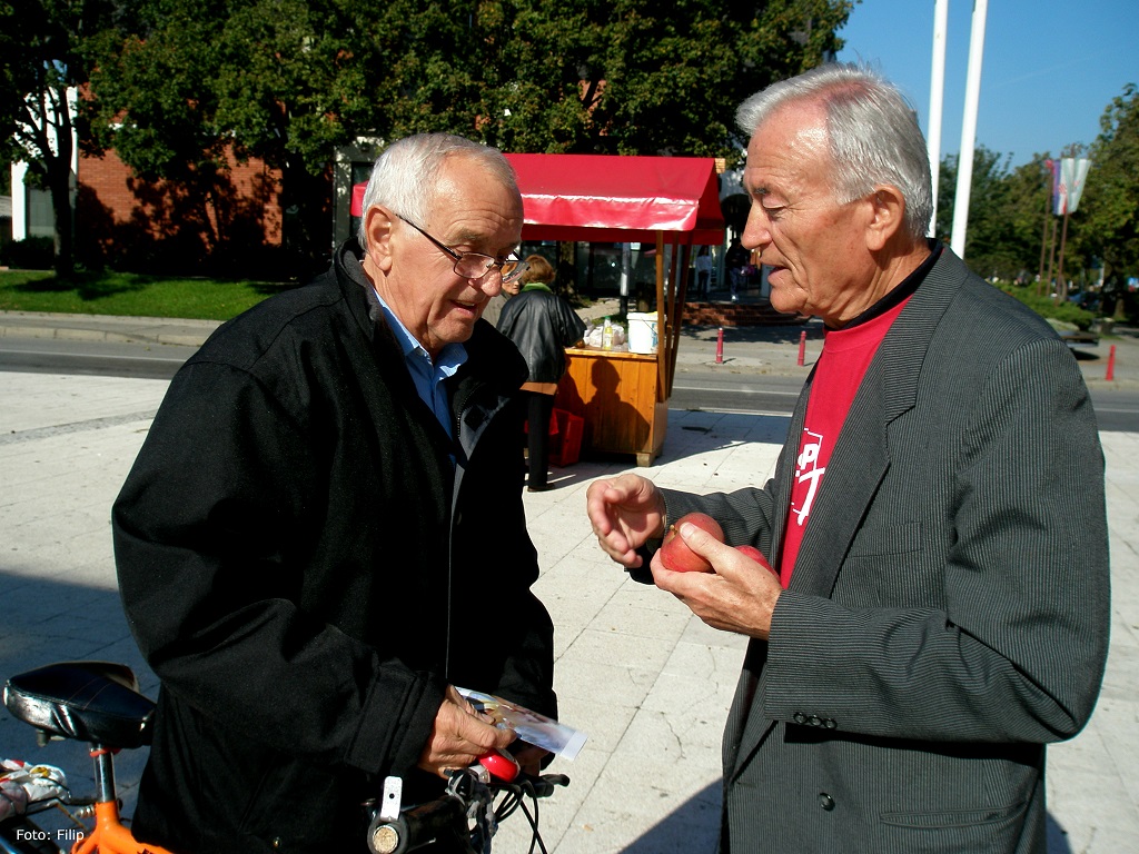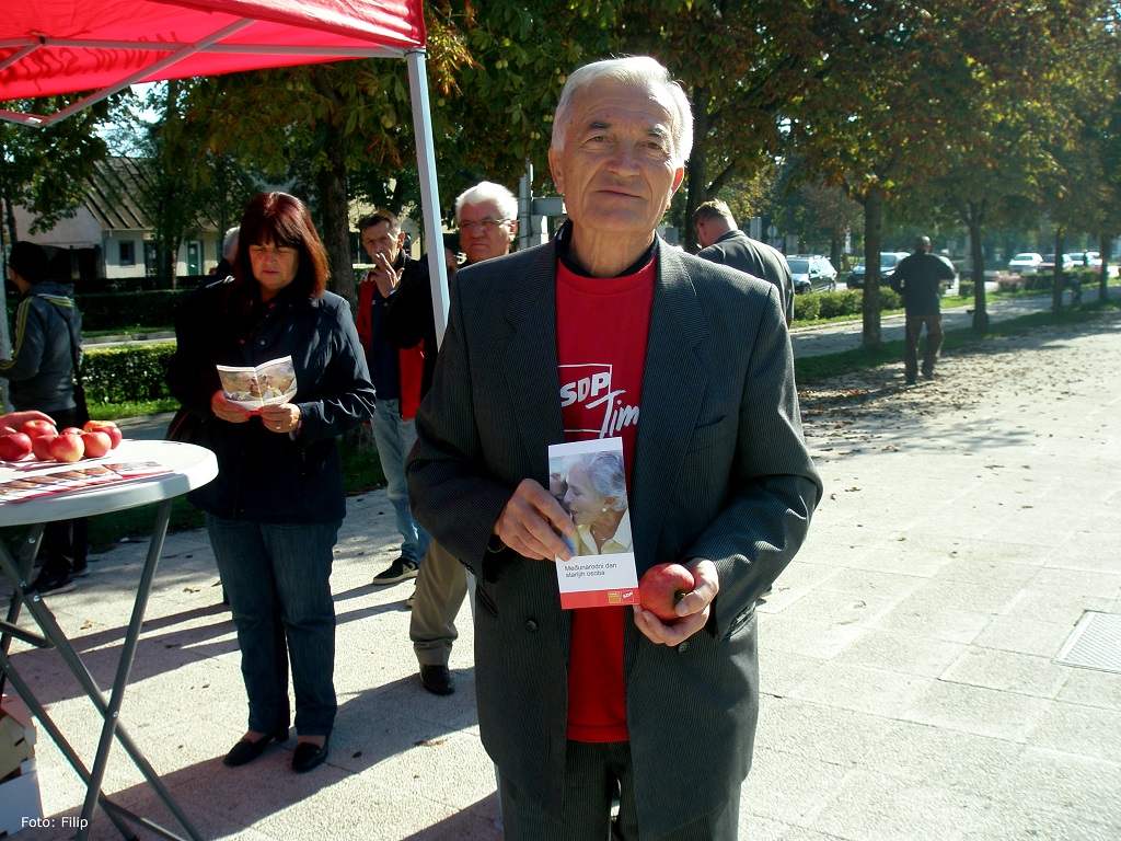 Forum Seniora SDP-a Velike Gorice jučer je na Tržnom centru u Velikoj Gorici obilježio Međunarodni dan starijih osoba. Kao i prijašnjih godina, starijim sugrađanima simbolično su podijeljene jabuke.