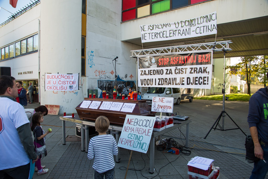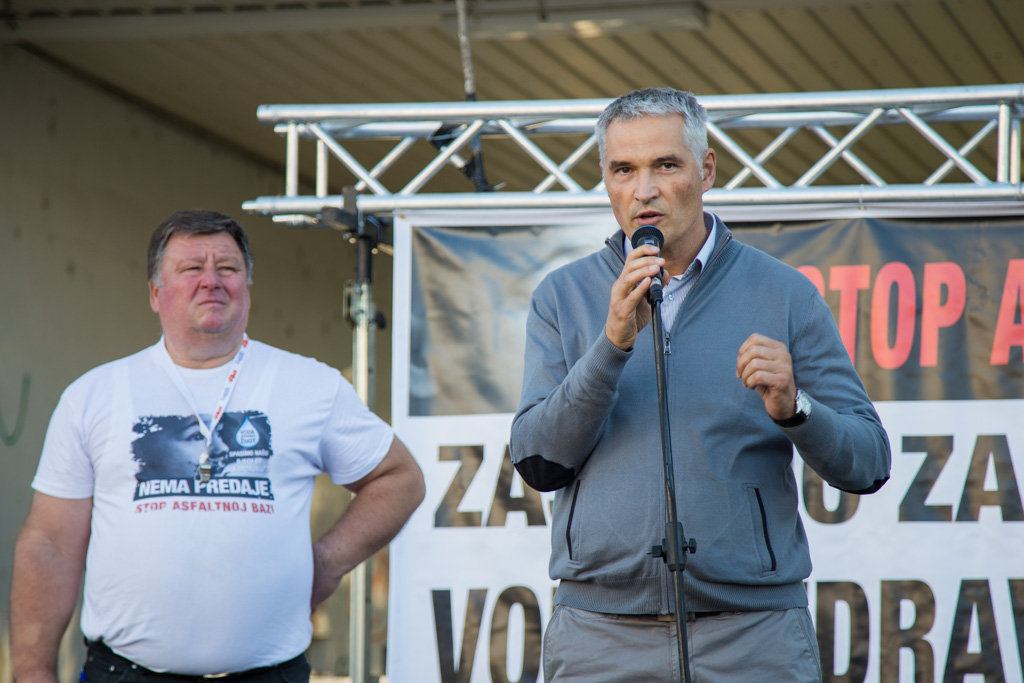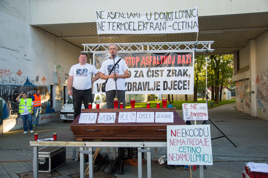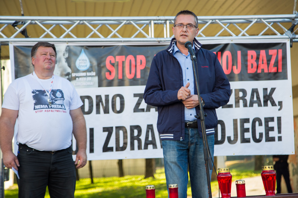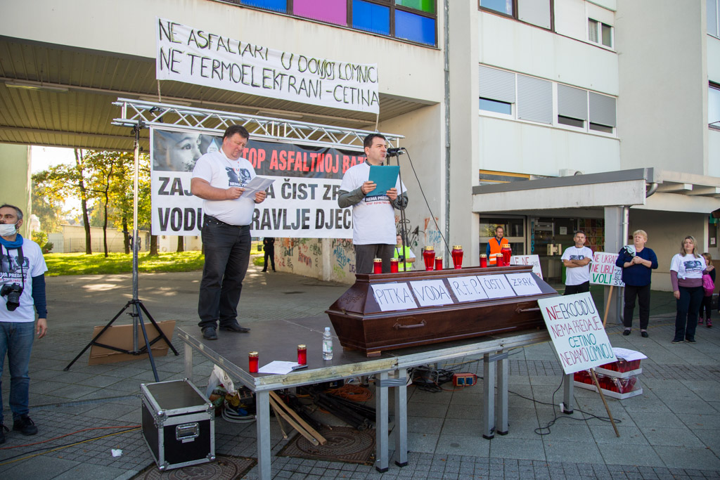 Mario Janečić u svom je govoru iznio tri zahtjeva Inicijative stop asfaltnoj bazi u Donjoj Lomnici. – Zahtijevamo od Ministarstva zaštite okoliša da odmah zabrani gradnju zbog propusta u Studiji o utjecaju na okoliš i novonastalih promjena u okolišu. Zahtijevamo od Ministarstva graditeljstva da odmah ukine građevinsku dozvolu zbog proceduralnih pogrešaka napravljenih prilikom njezinog izdavanja. Zahtijevamo od velikogoričkog gradonačelnika gospodina Dražena Barišića da raskine ugovor sa Strabagom zato jer ga je potpisao protivno volji građana.