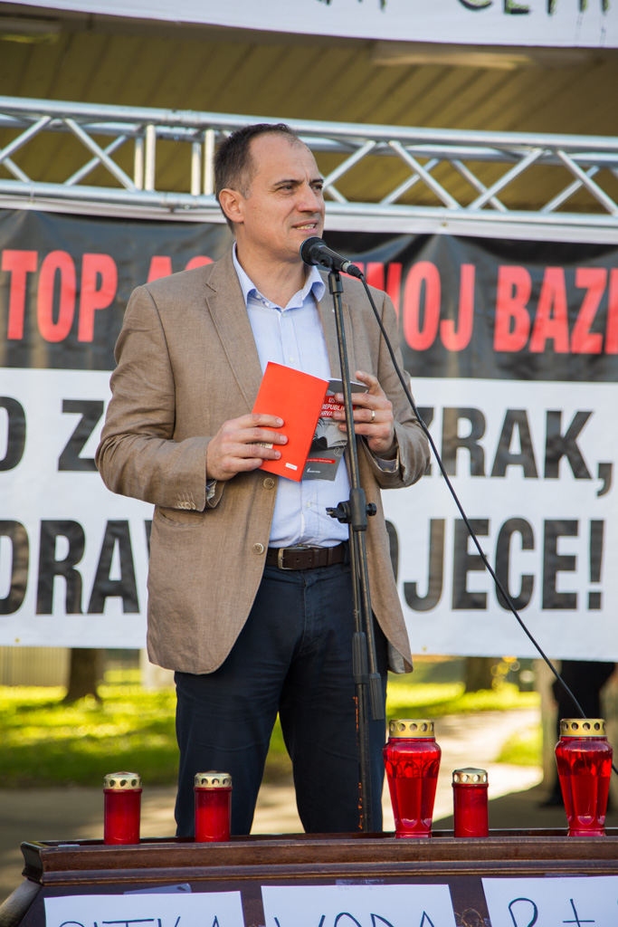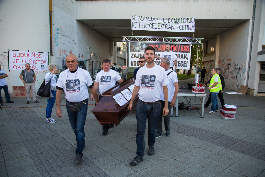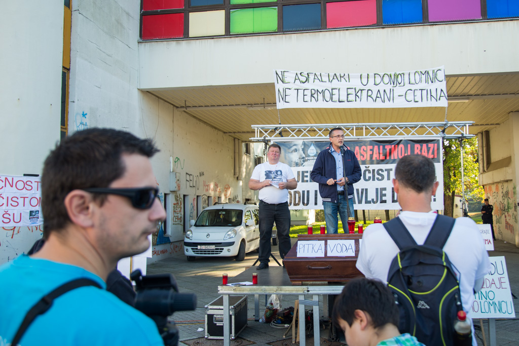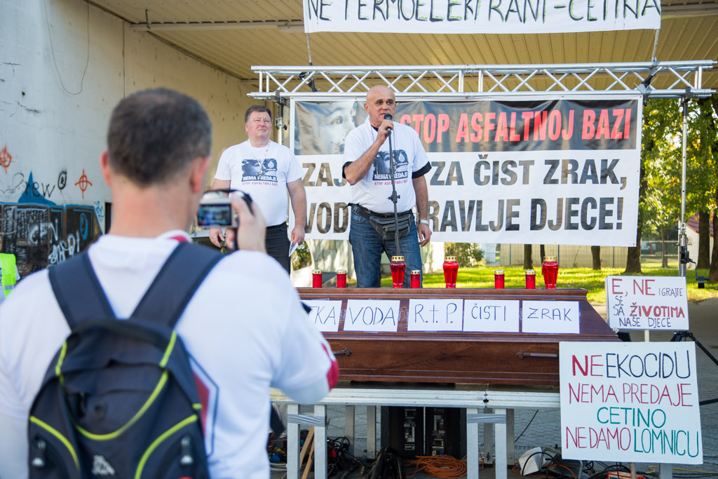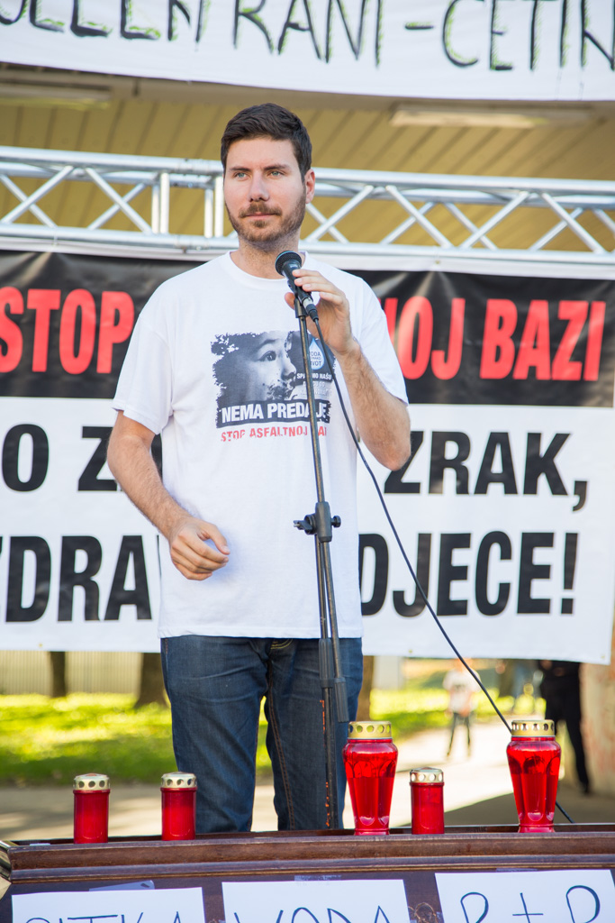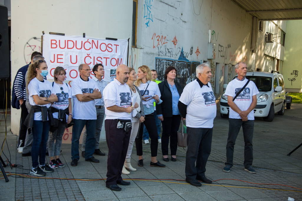 Mario Janečić u svom je govoru iznio tri zahtjeva Inicijative stop asfaltnoj bazi u Donjoj Lomnici. – Zahtijevamo od Ministarstva zaštite okoliša da odmah zabrani gradnju zbog propusta u Studiji o utjecaju na okoliš i novonastalih promjena u okolišu. Zahtijevamo od Ministarstva graditeljstva da odmah ukine građevinsku dozvolu zbog proceduralnih pogrešaka napravljenih prilikom njezinog izdavanja. Zahtijevamo od velikogoričkog gradonačelnika gospodina Dražena Barišića da raskine ugovor sa Strabagom zato jer ga je potpisao protivno volji građana.