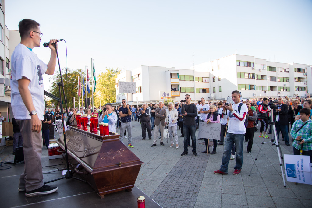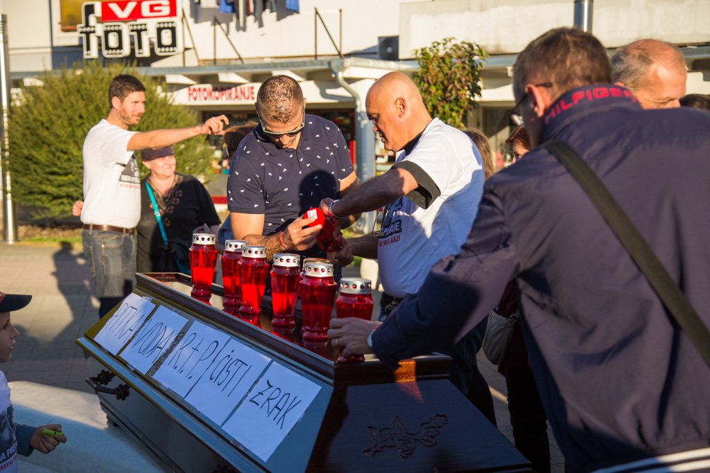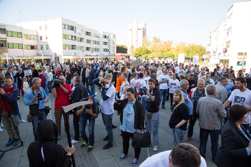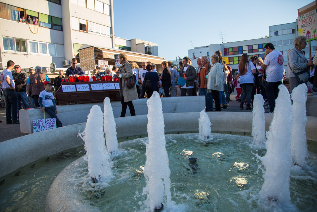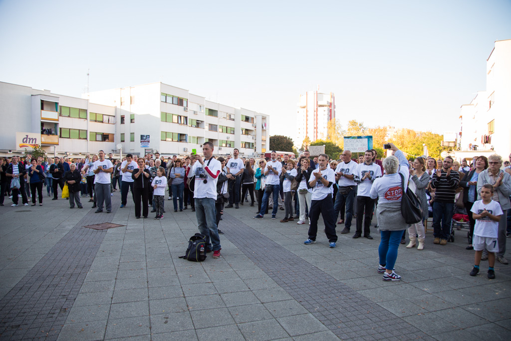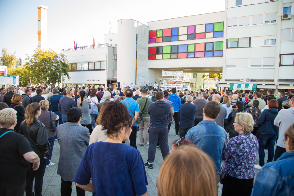 Na Trgu Stjepana Radića danas je održan prosvjed protiv izgradnje asfaltne baze u Donjoj Lomnici. Mnoštvo građana okupilo se kako bi još jednom podigli glas protiv Strabagovog postrojenja u njihovom naselju. Krešimir Sloković, član Inicijative Stop asfaltnoj bazi u Donjoj Lomnici prvi je susjed do gradilišta. – Situacija izgleda jako loše. Izgrađen je dobar dio spremnika i sama baza je dignuta u zrak. To će se vrlo brzo montirati i bit će spremno za dalje. Strabag ništa ne interesira. Oni imaju dozvole, rade punom parom, čak i subotom u noć. Sve je puno prašine, buka je cijelo vrijeme, rade od šest ujutro do navečer. Valjci kada prolaze podrhtava sve u kući.