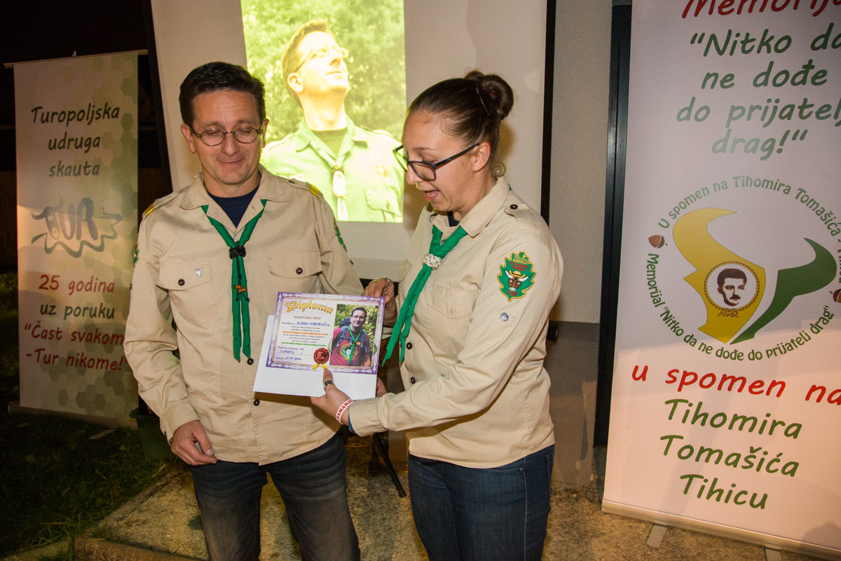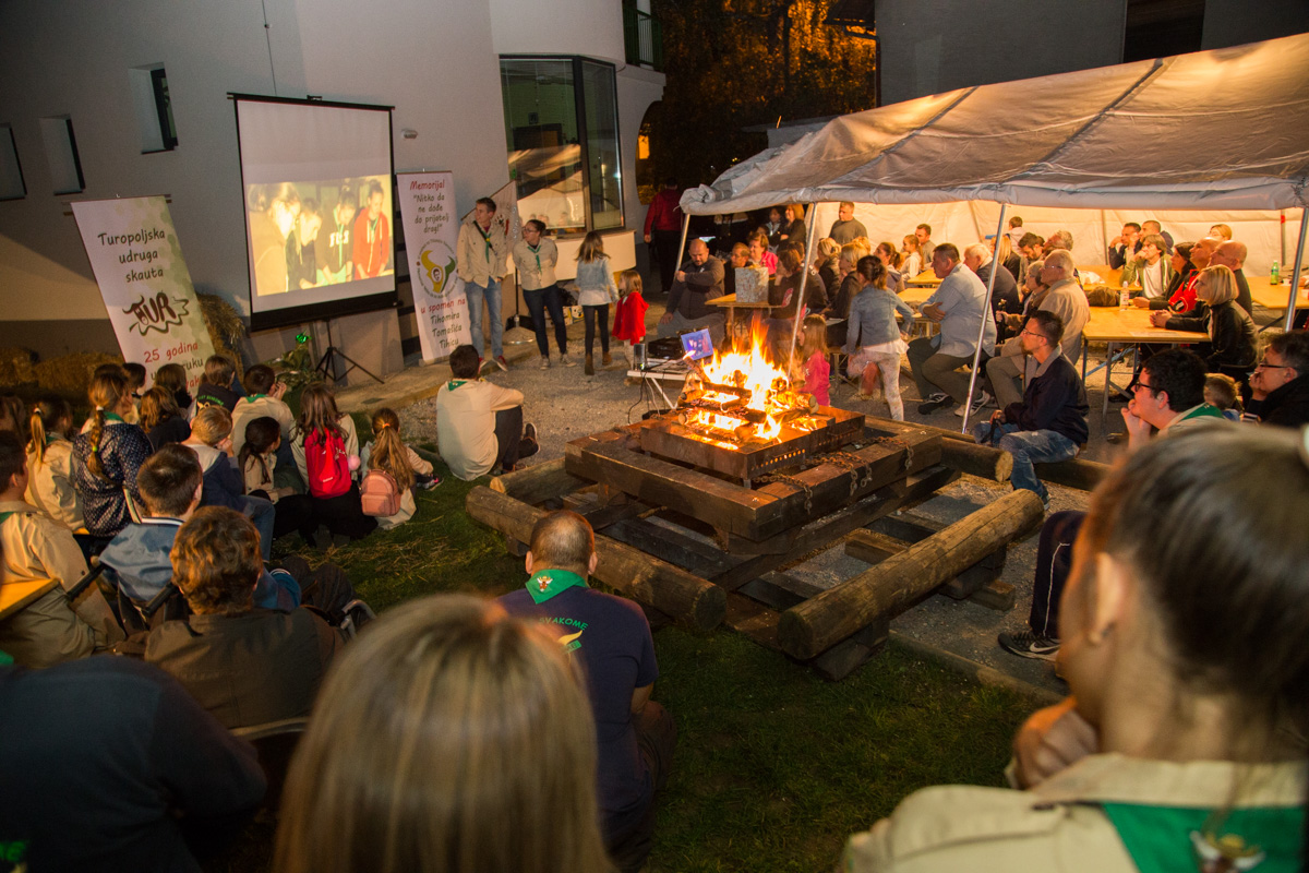Prigodno su obilježene čak tri obljetnice. – Bila je ovo prigoda da obilježimo 25 godina Turopoljske udruge skauta koja je osnovana 1992. godine u jeku Domovinskog rata. Prisjećamo se i skautizma u Velikoj Gorici koji datira od 1957. godine te smo obilježili i 60 godina izviđačke organizacije u našem gradu. To se poklapa sa 110. godišnjicom osnivanja skautskog pokreta koji je 1907. godine lord Robert Baden Powell osnovao i započeo s jednim logorovanjem s dječacima iz Londona na otoku Brownsea – ispričao je Alen Konjević, predsjednik Turopoljske udruge skauta “TUR”.Uz logorsku svečanu vatru, članovi udruge su plesali i pjevali, a druženje se nastavilo uz gulaš. Prikazana je i projekcija polusatnog filma i pregleda fotografija koje su nastale u posljednjih 25 godina, a podijeljene su i zahvalnice.Članovi udruge i njihovi voditelji predsjedniku su priredili mnogo poklona, a jedan od njih je i trodnevni bračni izlet za njega i njegovu suprugu. – Jako su me ugodno iznenadili. Jedino kažem ne znam hoću li pronaći tri slobodna dana da odem na taj poklonjeni bračni izlet u toplice. Zahvaljujem im se od srca. Mogu se ja truditi koliko hoću, ali bez njih ja ne bih napravio ništa. Koliko oni misle da sam ja doprinio tome da ova organizacija postoji u Velikoj Gorici, ja mogu biti samo zahvalan što imam prijatelje koji rade sa mnom jer bez njih ne bih napravio ovakav posao – priznao je Konjević.Kako je biti član TUR-a vrlo dobro zna Mario Dilberović, bivši skaut i sadašnji voditelj skauta. – Ja sam u skaute, tada izviđački pokret, ušao u drugom razredu osnovne škole kada je naša Udruga brojala jako malo članova. Tada sam bio poletarac i nakon toga godine su prolazile. Imam zanimljivu anegdotu. Trebala je potvrda roditelja, papirić koji ja nisam donio na prvi susret pa nisam mogao ići. Tek sam došao na drugi susret. Tada nas nije bilo mnogo, s voditeljima 35. Sada smo mi postali voditelji i tako su dolazile i nove grupe djece. Sada ima i preko 100 članova – to su aktivni članovi koji dolaze svaki tjedan.Koliko je skautizam bitan za odrastanje djeteta stručno nam je objasnio Dilberović. – Kako rasteš i kako učiš o funkcioniranju društva i načinima vođenja, ne samo preko izviđača, nego i općenito, shvatiš koliko je skautizam pokret. Ne govorimo o slobodnoj aktivnosti jer nama odraslim voditeljima to više nije slobodna aktivnost. To postane način života – skautski život. To je jedna od slobodnih aktivnosti koja djeci daje duhovne vrijednosti, etička načela, fizičku aktivnost, njeguje ljubav prema domovini, multikulturalnost. Za svoga voditelja ima samo riječi hvale. – Alen je od početka bio s nama, bio je jedan od voditelja. Imao je još nekoliko voditelja koje je učio kako će učiti nas, jednako tako je učio mene kako ću učiti drugu djecu. On je osoba koja je gradu doprinijela jako puno, zato je i dobio nagradu Grada. Doprinio je i u našim životima. Svi smo znali reći da nam je Alen drugi tata koji je prošao s nama period puberteta – zaključio je Dilberović.Ovo spontano druženje nekoliko generacija skauta u Centru trajalo je do dugo u noć te podsjetilo mnoge koliko je važno biti skaut.