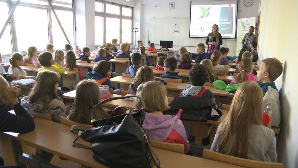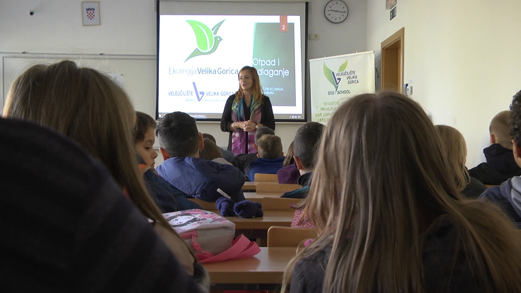 Šezdeset učenika trećih i četvrtih razreda iz Osnovnih škola Eugena Kvaternika i Jurja Habdelića jutros se, sa svojim učiteljicama, sastalo u Veleučilištu Velika Gorica gdje su sudjelovali na predavanju profesorice Sanje Kalambura koja im je objasnila zašto je važno odvajati otpad. – Djeca znaju jako puno. Uče već od svojih roditelja, a s njima rade i njihove vrijedne učiteljice. Ovo danas što smo prezentirali, u suradnji s mojim Veleučilištem, je na vrlo jednostavan način opisano što su vrijedne sirovine i što na kraju krajeva možemo ponovno upotrijebiti i iskoristiti. Naučili smo koliko je veliko odlagalište – 15 puta kao station Radnik i neke još sitnice – ispričala je voditeljica Eko škole Veleučilišta Velika Gorica.