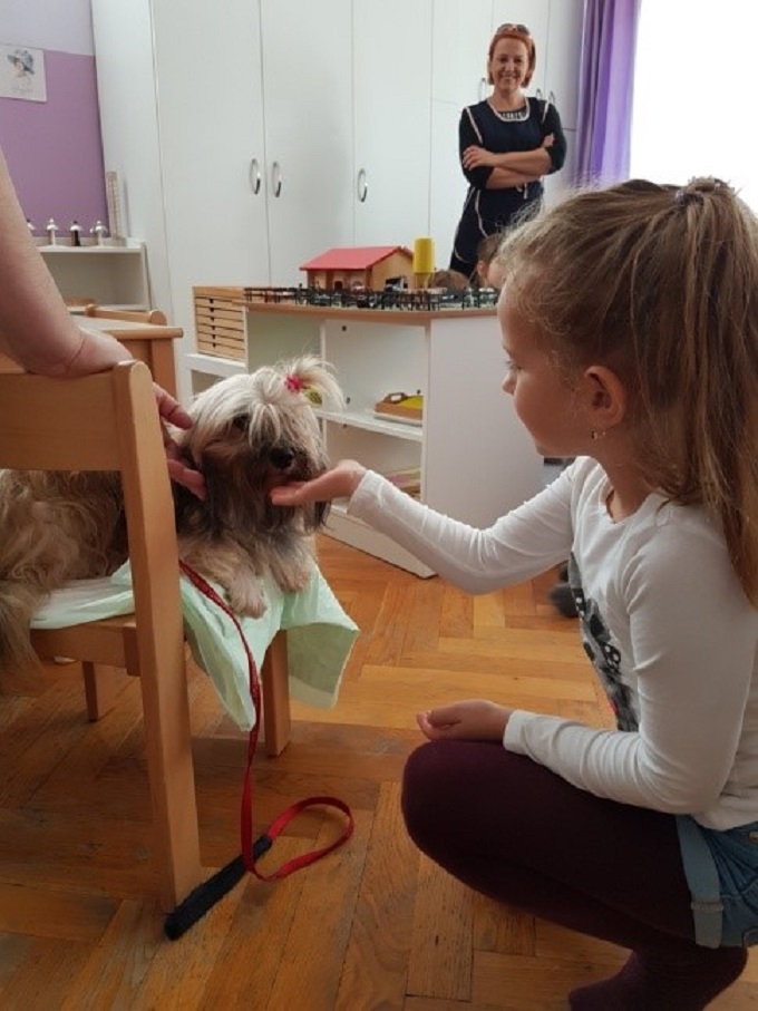 – Boravak psića u skupini odvija se uz licenciranog vodiča prema holističkom pristupu prema kojem pas ima partnerski odnos s vodičem, a svojim ponašanjem signalizira potrebe djeteta aktivno sudjelujući u radu s djecom. Svaki psić ima svoju “radnu odjeću” u šarenim bojama kako bi bio dostupan djeci koja imaju razvojne teškoće i poteškoće u senzornoj integraciji. Evie i Aya najčešće pomažu djeci s razvojnim teškoćama i posebnim potrebama pa će na ovaj način imati i novi oblik nadopune postojećim terapijskim oblicima, a uz razgovor o životinjama i kućnim ljubimcima istovremeno se osvještava potreba zaštita djece od nepoželjnih ponašanja u odnosima sa psima, te zaštita životinja uz stvaranje pozitivnih iskustava u odnosu sa životinjom – poručuju iz DV Ciciban.