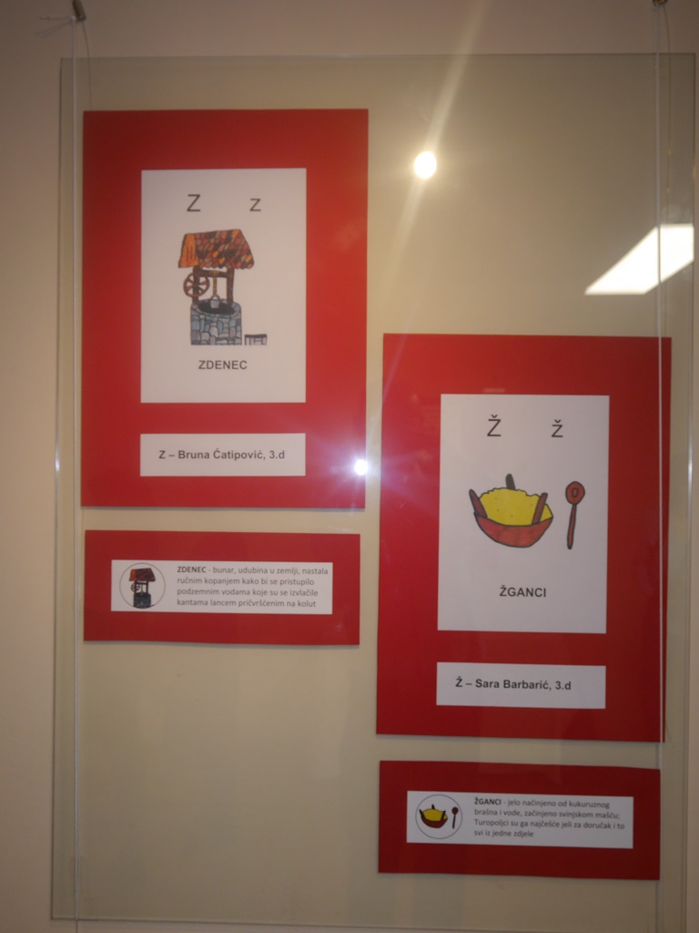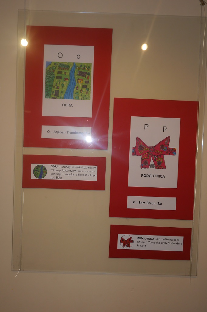 Izloženi su likovni radovi 16 učenika: Noa Boban, Lovro Fištrek, Ella Kaiser, Ivan Preložiček, Niko Stepanić, Sara Štach, Jakov Tomašić, Stjepan Trumbetaš, Veronika Marić, Lara Rašić, Daria Stipić, Valentina Šaf, Sara Barbarić, Bruna Ćatipović, Vida Cajner, Dora Nikšić, Rea Posavec i Una Poznić. Radovi su u likovnoj tehnici flomaster s motivima zavičaja koji prate slova abecede, a pojam uz crtež i slovo kratko je objašnjen.