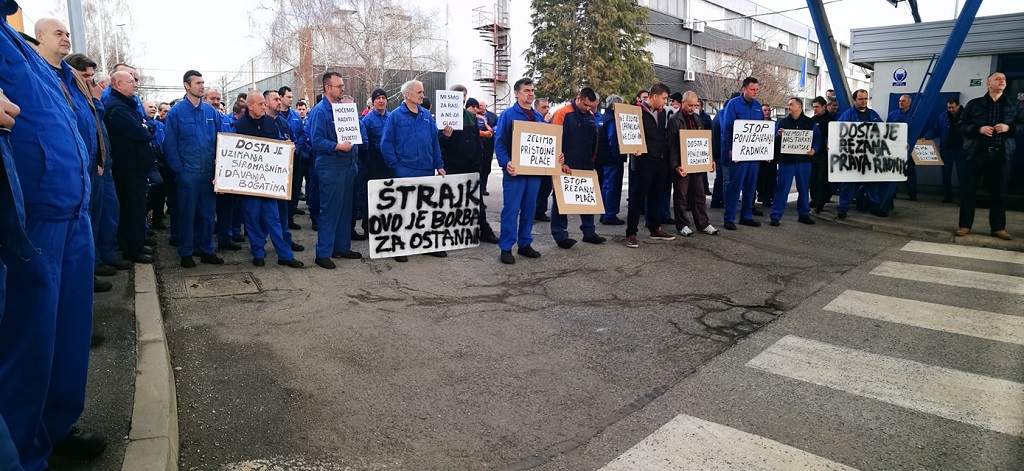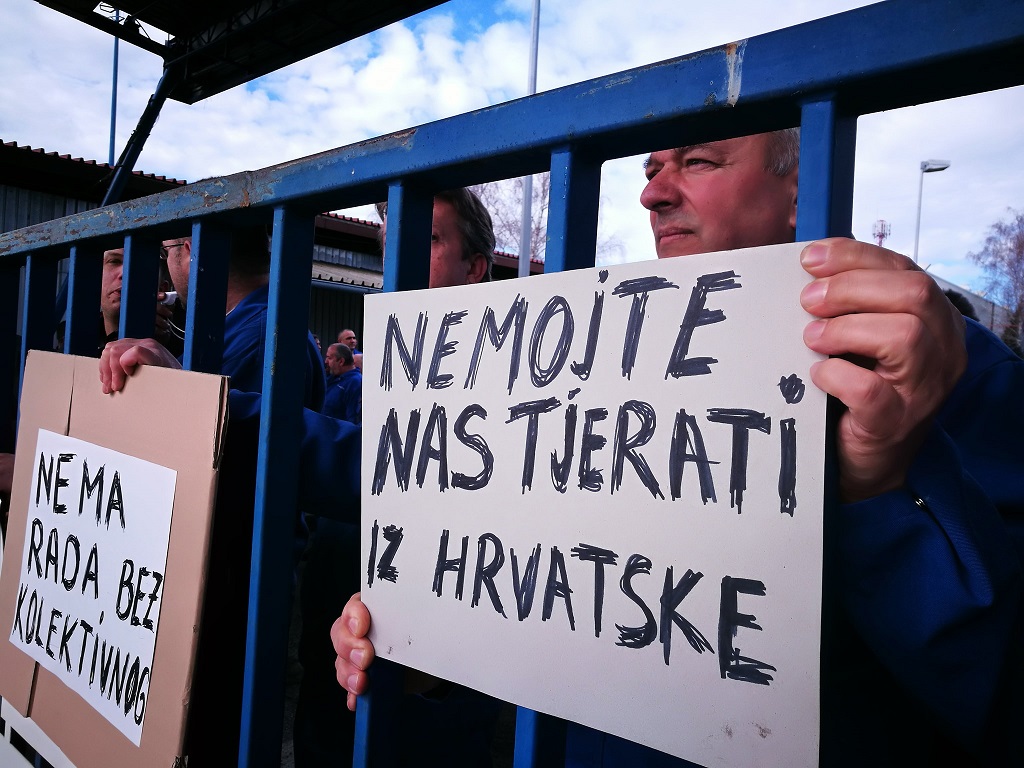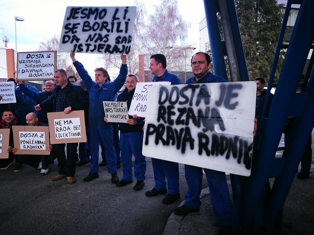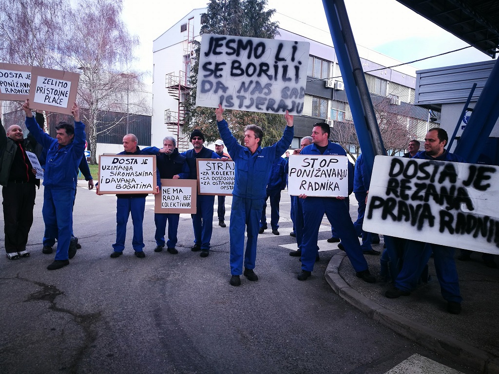 Radnici su nosili transparente s natpisima poput ”Tražimo pristojne plaće”, ”Stop ponižavanju radnika”, ”Jesmo li se borili da nas sad istjeraju”.