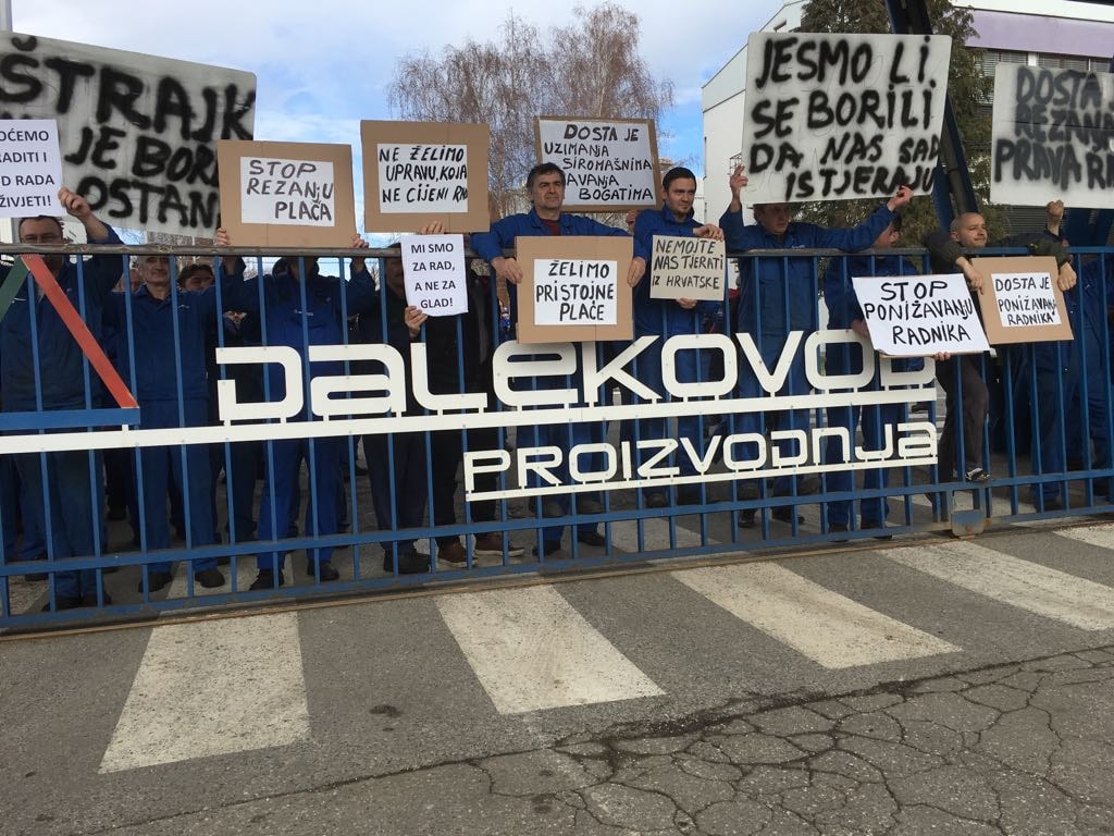 – Najave štrajka su se obistinile. Uprava nije imala sluha za naše zahtjeve. Naši zahtjevi nisu pretjerani. Naši zahtjevi su da ostanemo i da opstanemo i da živimo od svoje plaće. Uprava nam želi smanjiti plaće, želi nas obezvrijediti i mi to ne možemo dozvoliti. Štrajk nam nije bio cilj, nego krajnje sredstvo. Pregovaramo od početka studenoga. Prošli smo pregovore dva mjeseca, postupak mirenja, skupove radnika, izvanredni nadzorni odbor, ali uprava nema sluha. Takva uprava, koja skida ionako niska prava radnika, za nas je katastrofalna uprava. Mi smatramo čak da je ovo namjera da se sruši, da se proda, da se nekome da u bescjenje. Pitamo javnost i hrvatske institucije da li brinu o radnicima, da li brinu za opstojnost proizvodnje u Hrvatskoj, imamo li mi budućnost – rekao je Ivica Bajlović, predsjednik Sindikata proizvodnje Dalekovoda.