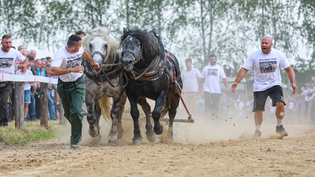 Velikogoričan Vedran Pereković na 3. Državnom natjecanju u vuči trupaca, koje je održano u nedjelju u Kušancu, osvojio je četvrtu pobjedu ove sezone, zauzevši prvo mjesto u teškim parovima sa svojim konjima Sokolom i Gajtanom. Na natjecanju je bilo 13 parova u lakoj kategoriji do 1110 kilograma, 12 u srednjoj do 1310 kilograma i 10 parova u teškoj kategoriji preko 1310 kilograma.