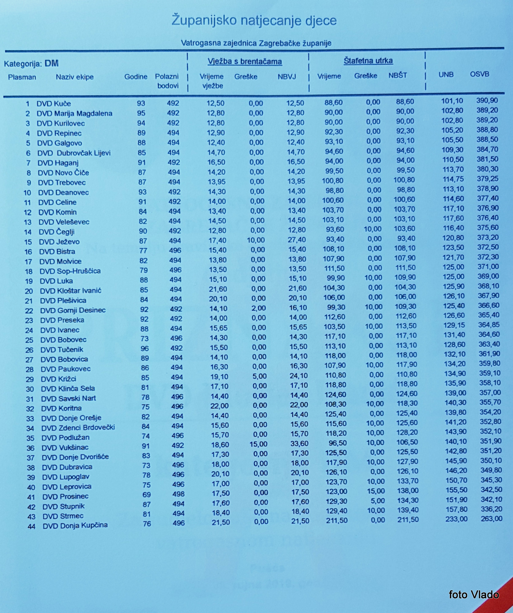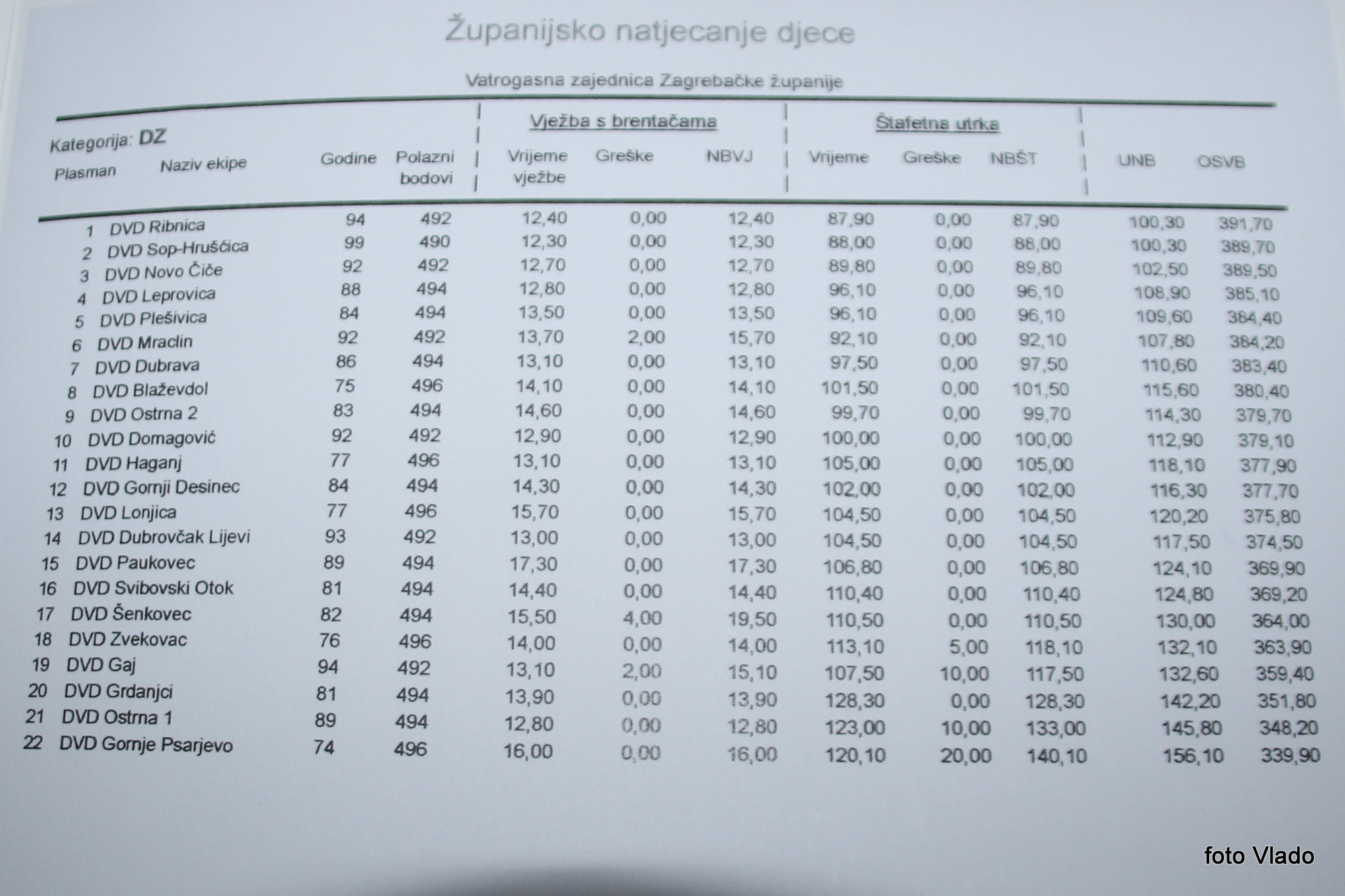 U dvije kategorije djeca ženska i djeca muška Turopoljci su odnijeli četiri od ukupno šest pehara. Cure iz Ribnice i dečki iz Kuča osvojili su prva mjesta i plasman na županijsko natjecanje iduće godine dok su DVD Novo Čiče ženska i DVD Kurilovec muška ekipa osvojili 3. mjesto. Iz naše zajednice još su nastupile cure iz DVD Mraclin koje su osvojile 6. mjesto i DVD Novo Čiče djeca muška na 8. mjestu. Ukupno se je natjecalo 66 ekipa; 22 ženske i 44 muške.