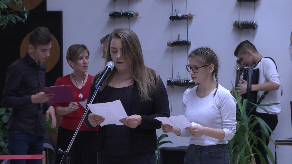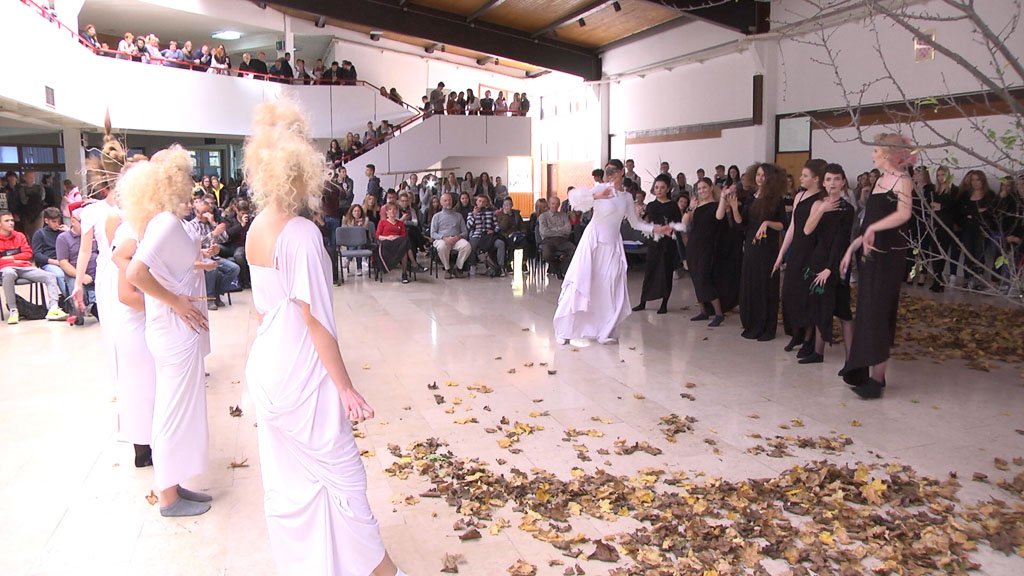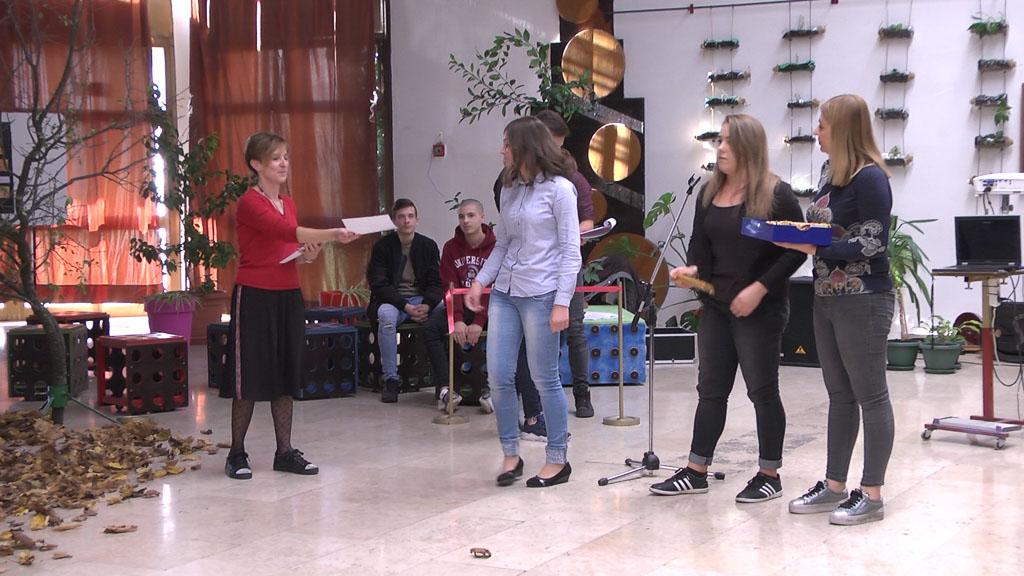 Došli smo u goste u velikogoričke srednje škole. A tamo, već treću godinu učenici iz strukovne obilježavaju Međunarodni dan srednjoškolaca. Prilika je to da se predstave svojim radovima i talentom. Neki recitiraju, sviraju, frizerke i pedikerke predstavile su se revijom radova i frizura, a onda- centralno događanje. Otvorenje novog hola. Sve su smislili učenici u suradnji s udrugom Zamisli, volonterskim centrom i arhitektonskim fakultetom, govori nam profesorica psihologije Sanja Šipušić Komar. “Osmislili su eko kutak, viseće vrtove i kubuse na kojima će učenici moći sjediti u ovom prekrasnom holu škole”, predstavlja nam profesorica.