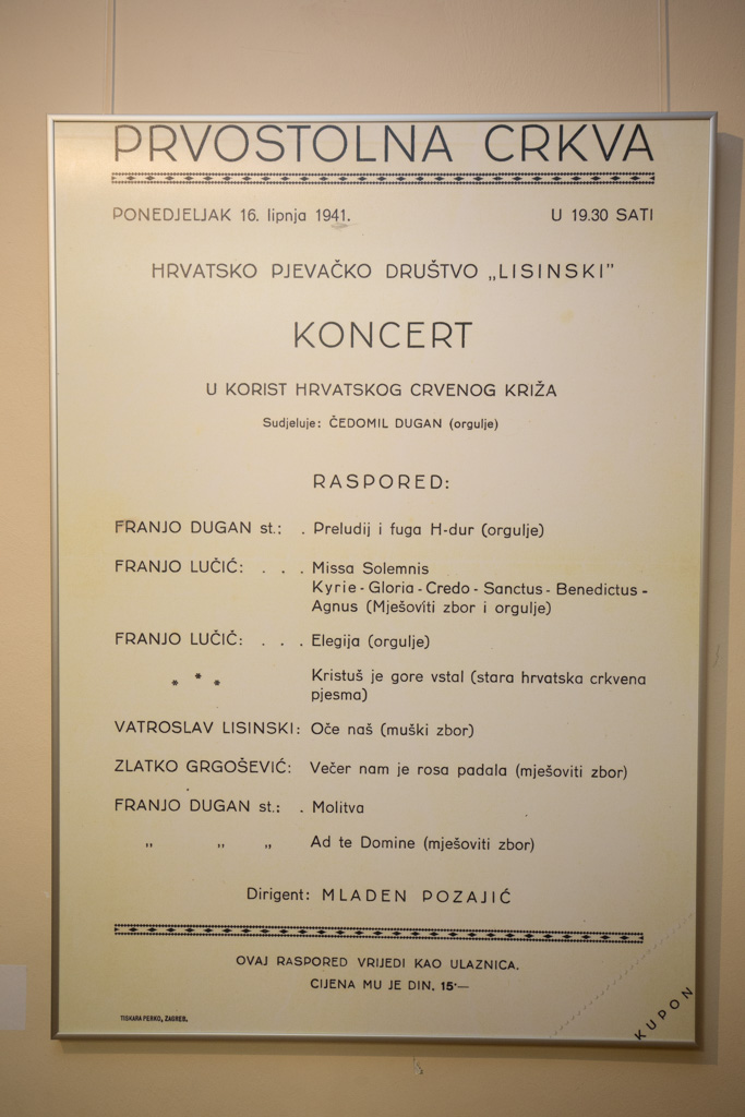Program manifestacije započeo je 28.03., Svetom misom u Crkvi NBDM, na kojoj je pjevao gradski zbor “Franjo pl. Lučić” iz Velike Gorice te se nastavio izložbom njegovih fotografija, portreta, rukom pisanih nota i dokumenata koji su preuzeti iz Muzeja Turopolja te knjiga iz fundusa Gradske knjižnice Velika Gorica.