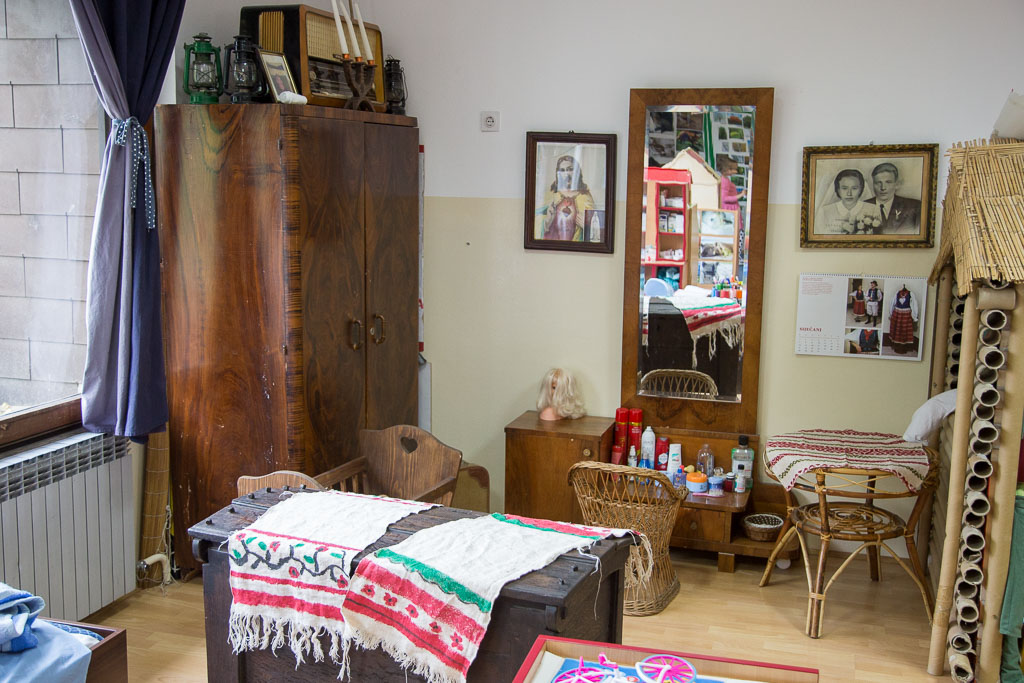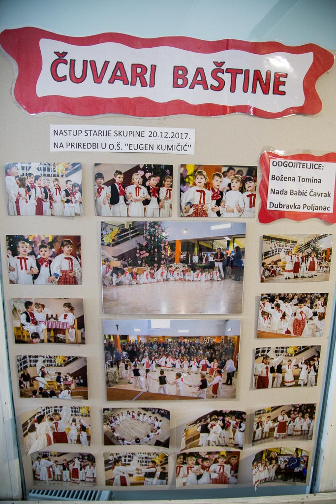 Tako su mališani predstavili svoja umijeća koja njeguju već četiri godine otkako vrtić ima status eko vrtića. Odgojiteljica Božena Tomina uvela nas je i u tradicijsku sobu koja vrtićancima služi za igru i učenje. A tamo, hrpa starih predmeta; od starinskog suđa, psihe, ćupova ili pegla, tu je i stara turopoljska hiža i soba s ormarom. „Bavimo se narodnim običajima, pjesmama, dječjim igrama, brojalicama, zagonetkama. Njegujemo i tradicijski govor, djeca recitiraju na kajkavskom, napravili smo i abecedu na turopoljskom“, govori nam odgajateljica.