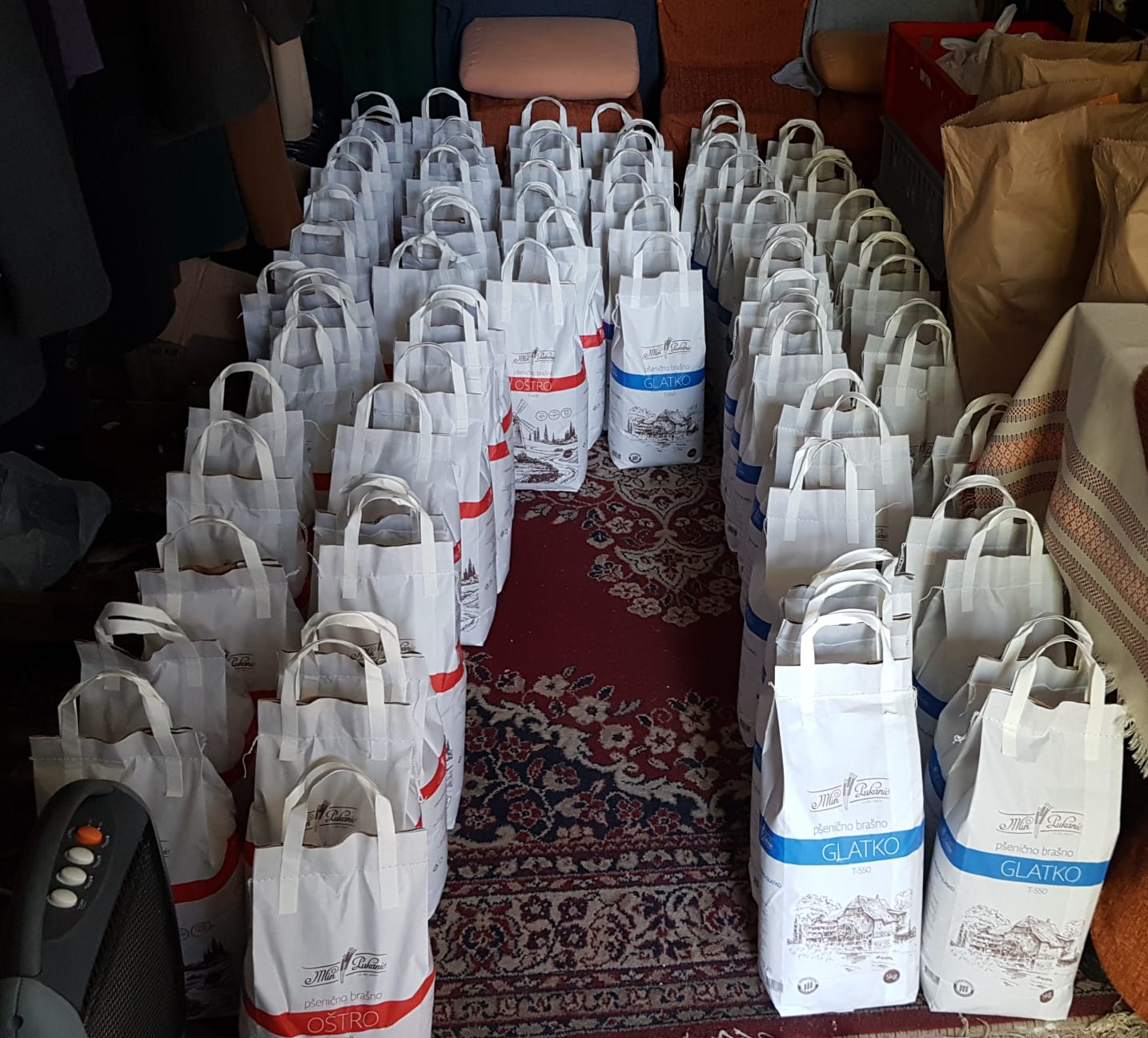 “I ove su godine u paketima osnovne prehrambene namirnice, brašno, ulje, šećer, tjestenina…tu je šunka za Uskrs i pinca”, govori nam predsjednik goričkih Rotaryjevaca, Damir Kotrman.