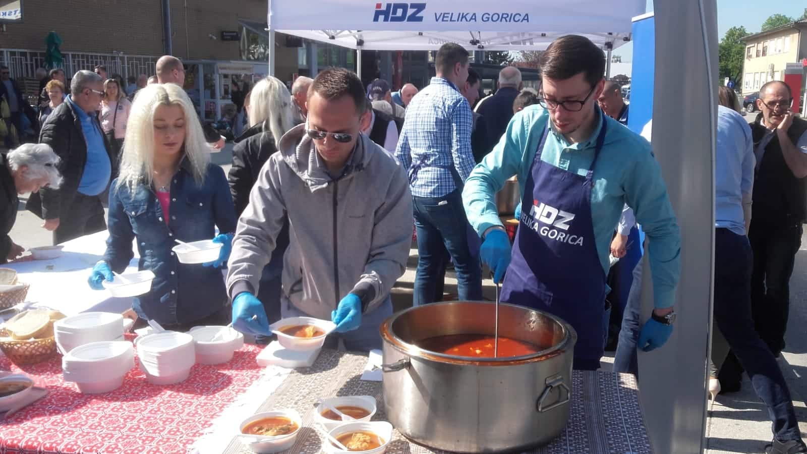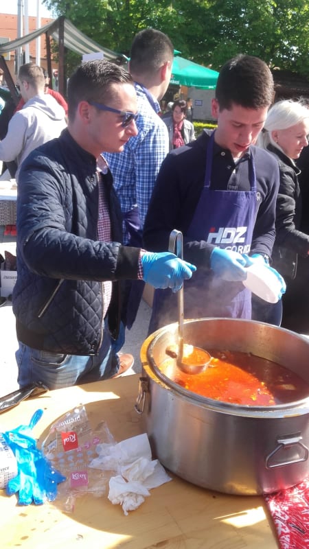 Petak. Tržni centar. 10 sati. Ima li boljeg i prometnijeg vremena u tjednu nedaleko najprometnijeg gradskog punkta- autobusnog kolodvora? Na Veliki petak idu zadnje pripreme za Uskrs, treba ukrasiti blagdanski stol, pisanice, kupiti šunkicu, popis je dugačak. No, odlična prilika da građani u danu malo zastanu bio je vrući fiš paprikaš koji je već drugu godinu zaredom na Veliki petak dijelila Gradska organizacija HDZ-a Velike Gorice. Mlade snage pripremile su dovoljan broj porcija, a tržni centar mirisao je na ribu.