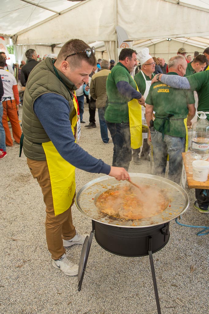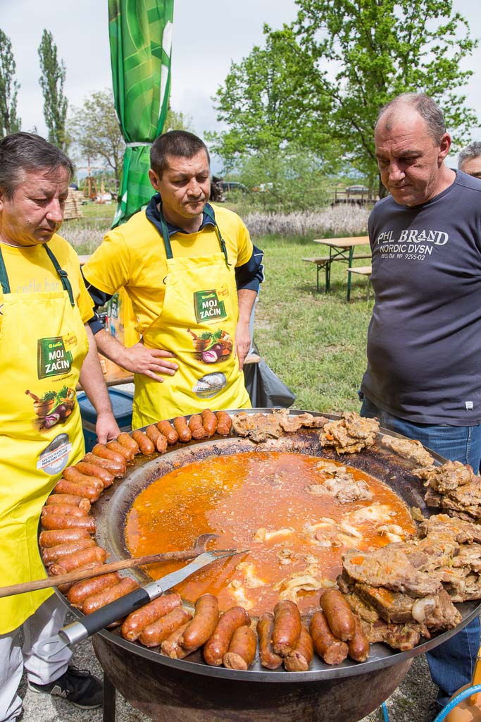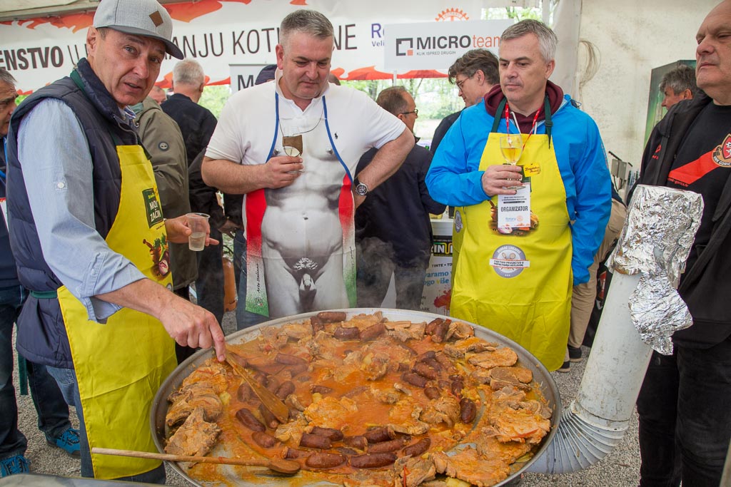 Iza 12 sati počelo je žiriranje i izbor najbolje kotlovine koju ocjenjuju istančani okusni pupoljci Davora Dretara Dreleta i Karmele Vukov Colić, nakon čega će se finim specijalitetom počastiti i posjetitelji. Cijena obroka je 30 kuna, a sav prihod namijenjen je stipendiranju goričkih učenika.