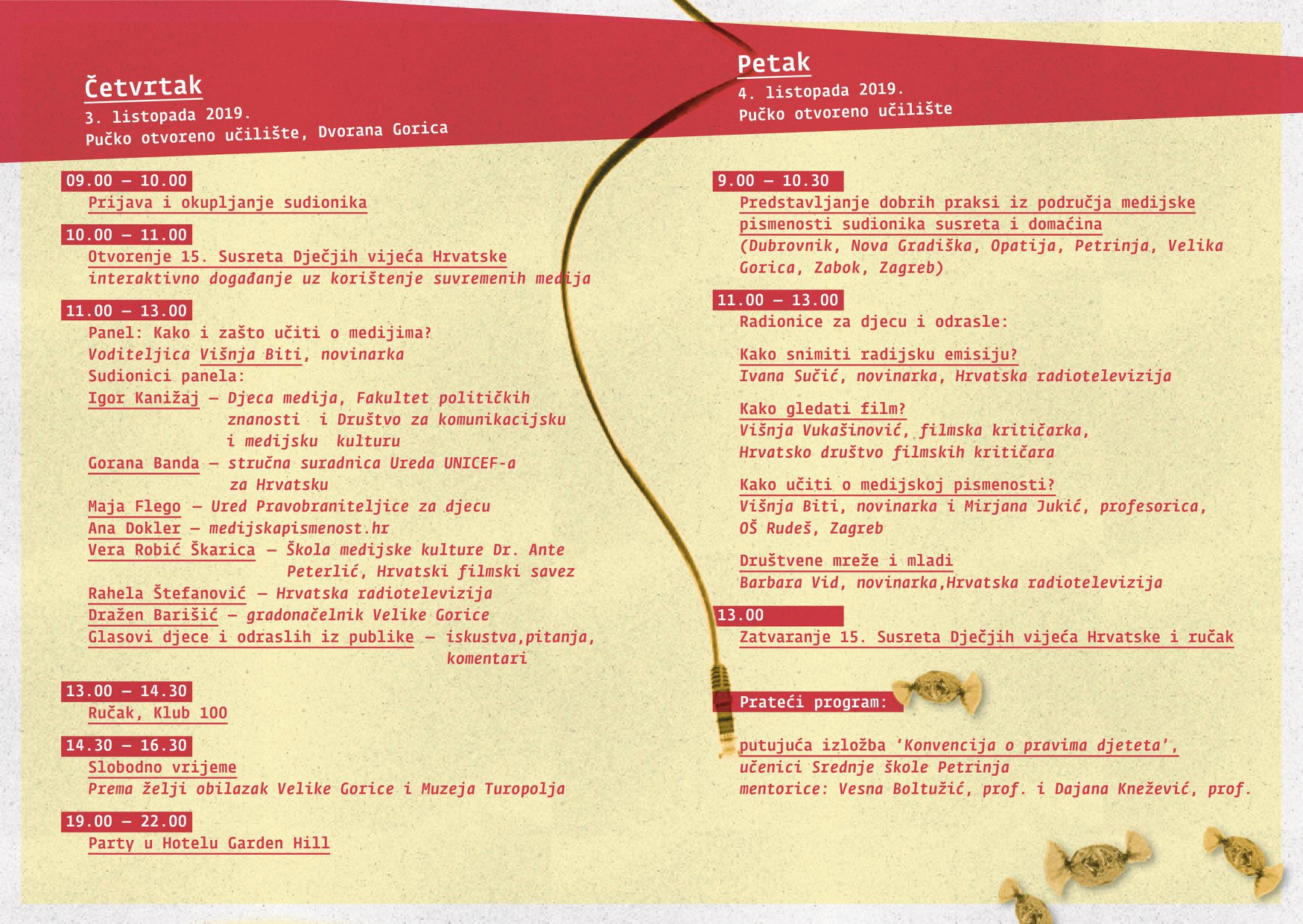 U godini velikih i značajnih obljetnica za prava djece, u Velikoj Gorici se 3. i 4. listopada 2019. održava 15. susret dječjih gradskih i općinskih vijeća Hrvatske. Susret se održava na temu: ”Kako i zašto učiti o medijima”, a centralna svečanost je u srijedu u 11 sati u dvorani Gorica gdje se očekuje dolazak brojnih gostiju iz svih krajeva zemlje.