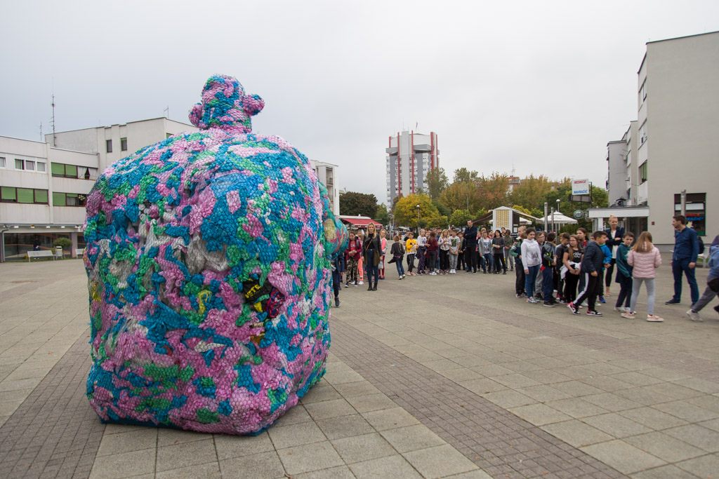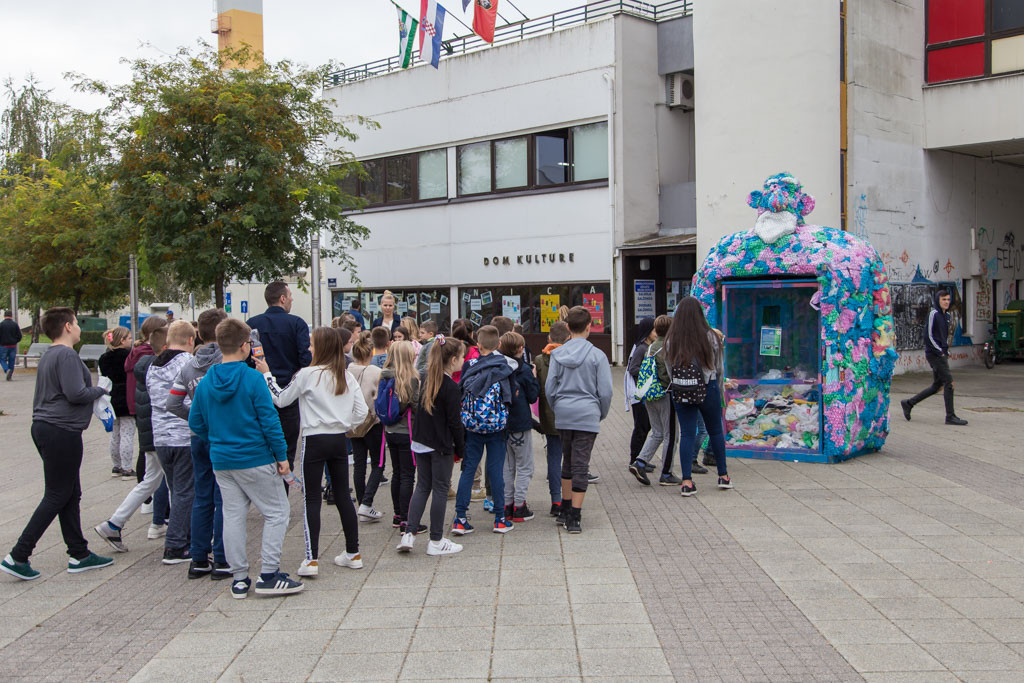 Učenici petog razreda Osnovne škole Velika Mlaka jučer su bili prvi u nizu petaša koji će pogledati predstavu “Uzbuna u plastičnom carstvu” koja progovara o štetnosti plastike i važnosti reciklaže i ponovne uporabe. Uoči predstave, koja je održana u prijepodnevnim satima u dvorani Galženica, umjesto ulaznice, sa sobom su donijeli plastične boce koje su odgovorno bacili u Moguta, interaktivnu skulpturu autorice, kiparice Mirne Savić koja stoji na centru Trga Stjepana Radića.