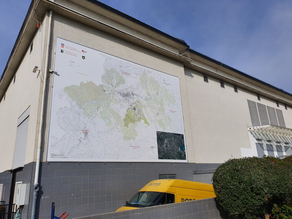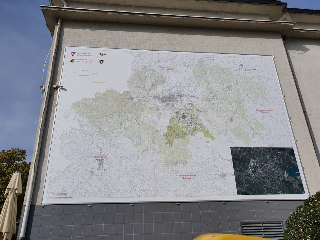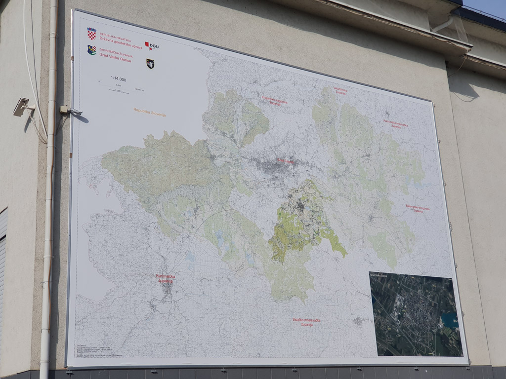 U suradnji s Državnom geodetskom upravom, na zgradu Pučkog otvorenog učilišta postavljena je velika karta Velike Gorice i Zagrebačke županije, što je svakako zgodan novi detalj u gradskom središtu. Kartozid je topografska karta koje prekriva jednu ili više teritorijalnih jedinica koje su povezane u jedinstvenu cjelinu i prezentirane u krupnijem mjerilu prikazivanja.