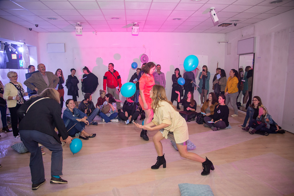 Na jedan dan. točnije noć, prostor u Zagrebačkoj bio je obojan umjetnošću, uz miris šećerne vate, protkan rozom svjetlošću i dimom, uz vesele plave balone i pucketavi pod asocirao je na djetinjstvo, na veselje i neko iščezlo vrijeme koje je sa sobom donijelo i pomalo zaboravljene vrijednosti…i kao da su poručile da je upravo djetinjstvo bilo doba kad smo se najviše igrali, veselili, osjećali i cijenili ljude i vrijednosti koje nas okružuju. Danas se mi okružujemo “vrijednostima”, slijedimo trendove, punimo svoje ormare, kupujemo stvari i stvarčice koje kasnije pretvaramo u otpad i rješavamo ih se. Poentirale su na kraju tekstom Dubravke Ugrešić koji su prilagodile za scenu, a koji u slobodnoj interpretaciji glasi otprilike ovako “Mi cijeli život proizvodimo smeće i onda ga sakupljamo. Sakupljamo te stvarčice koje su za nas nekad imale neku funkciju. Mi smo cijeli svoj dom pretvorili u odlagalište otpada”