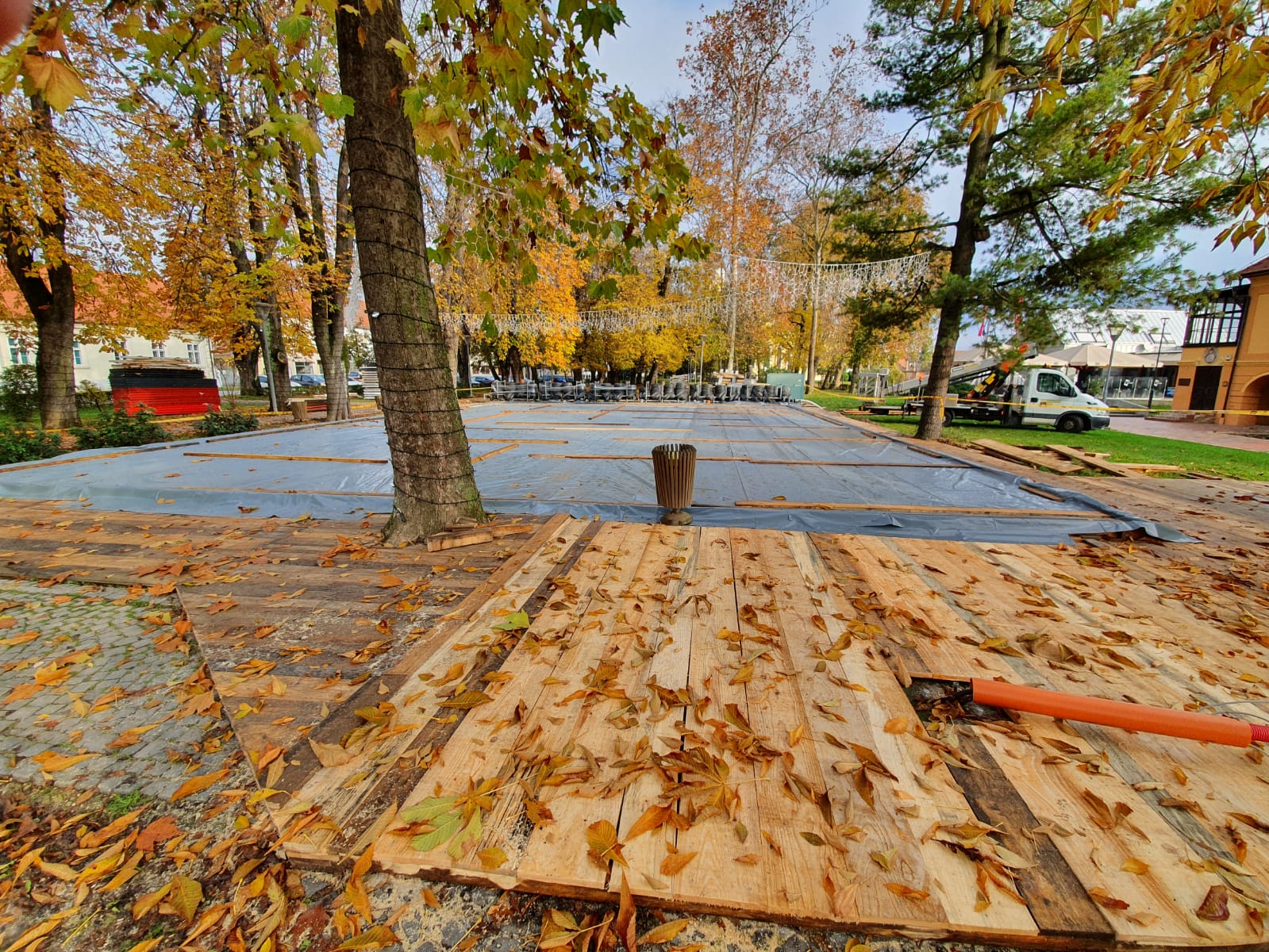 PRIPREME ZA ADVENT Uređuje se klizalište i postavljaju lampice, ukrasi i jelke
