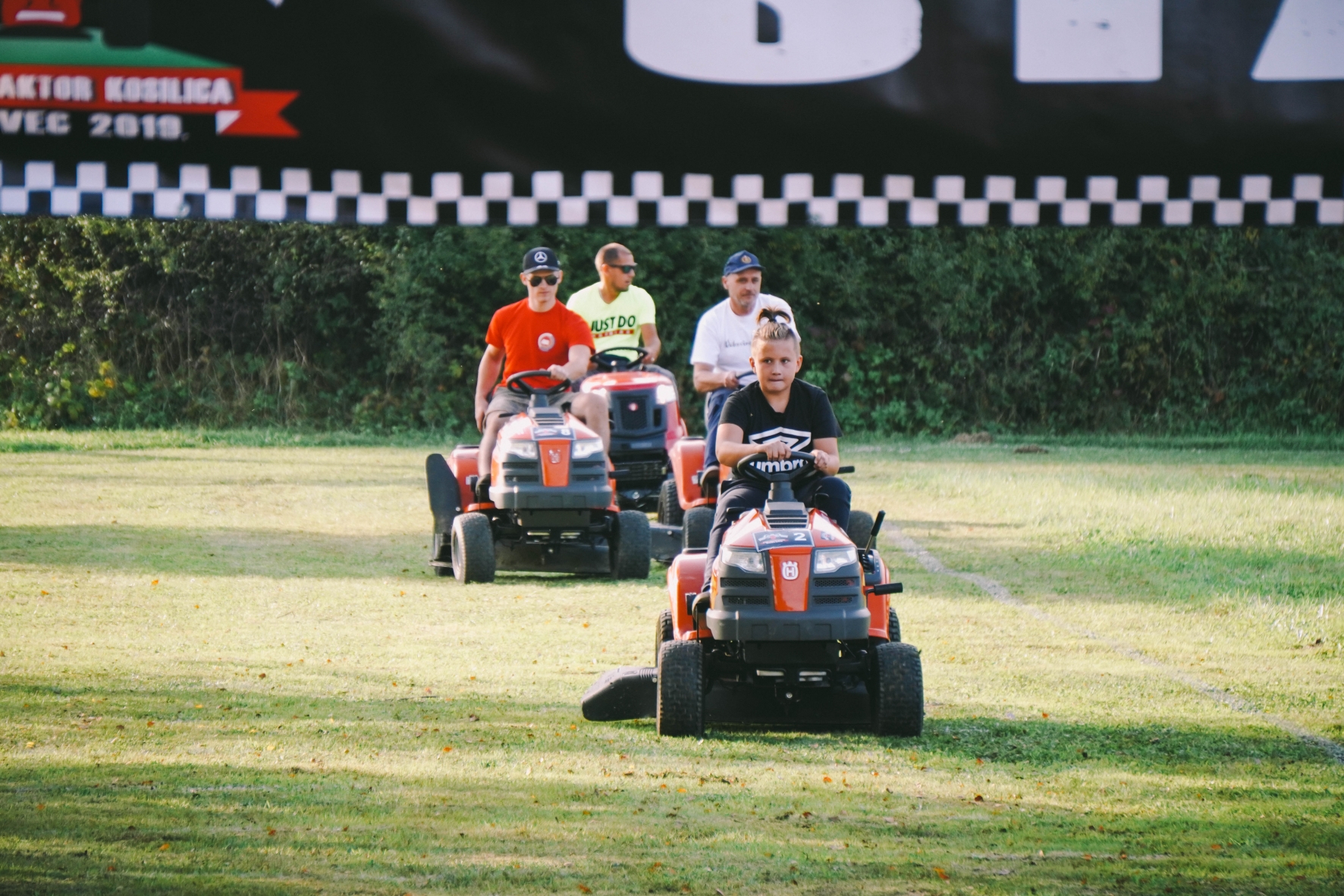 Utrka kosilica bila je po uzoru na prave Formula 1 utrke. Startalo se u 16 sati, a natjecatelji su trebali odvoziti 15 krugova ukupne dužine od 4500 metara. Natjecalo se osmero vozača, a pobjedu je odnio Ivica Dobrenić.