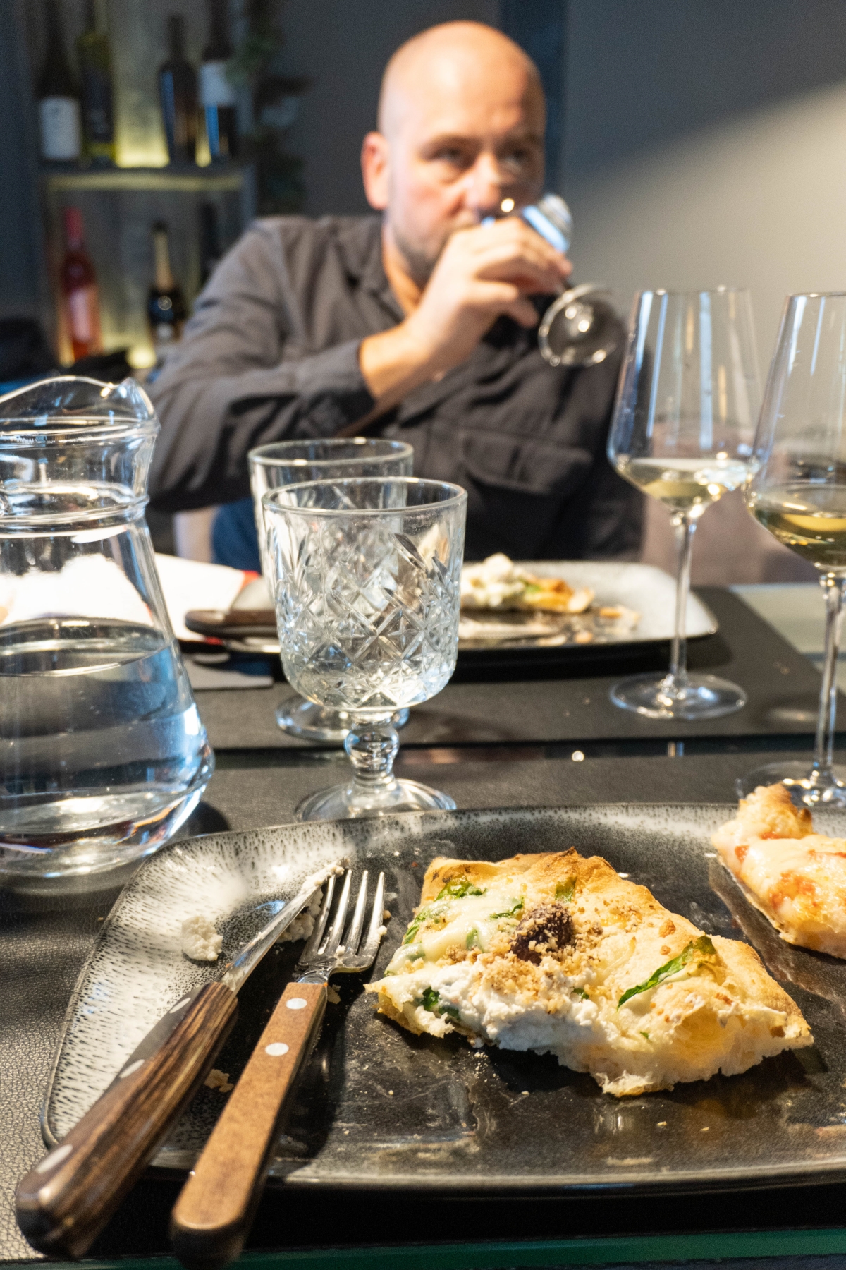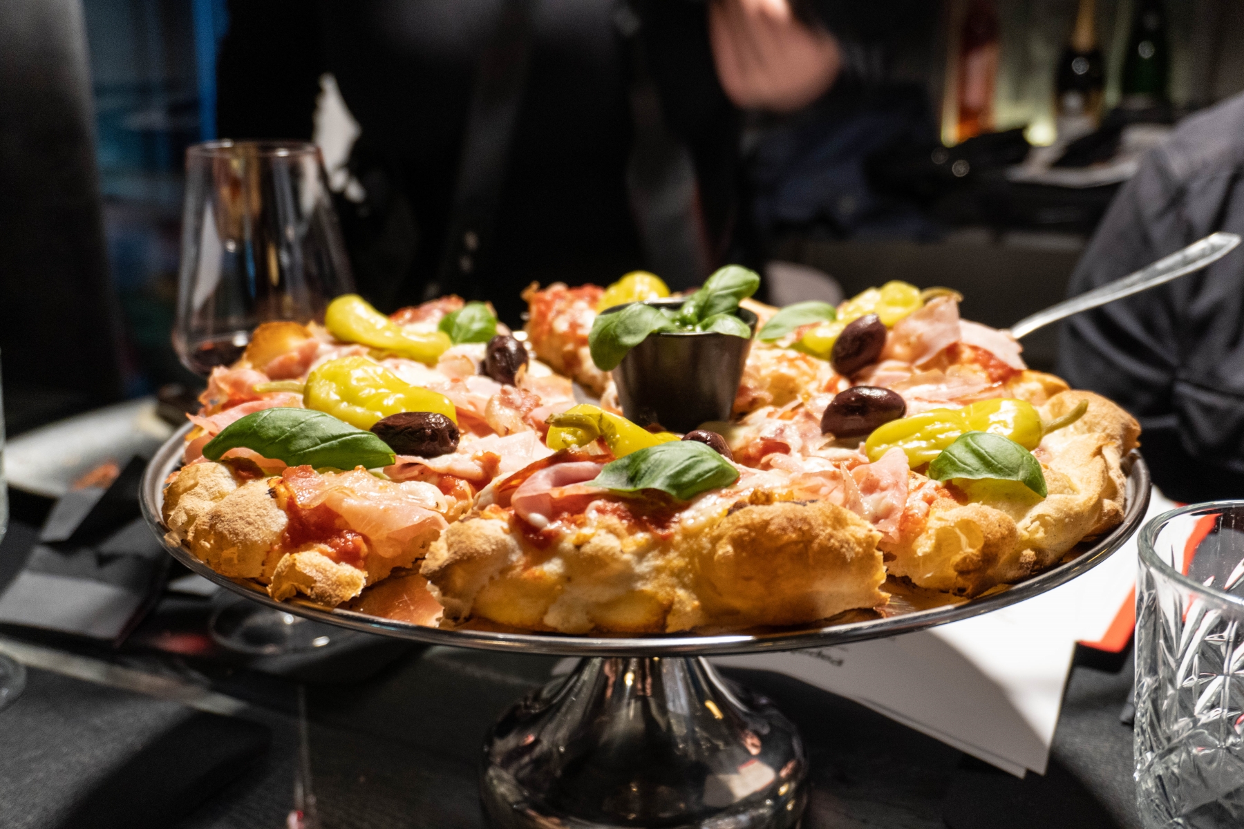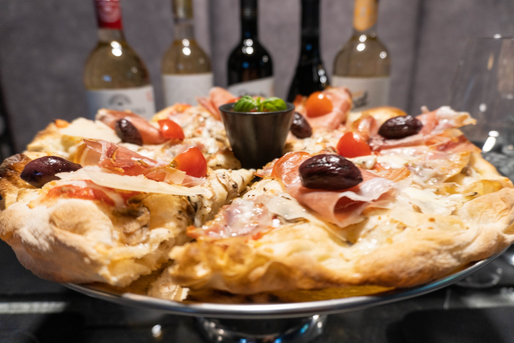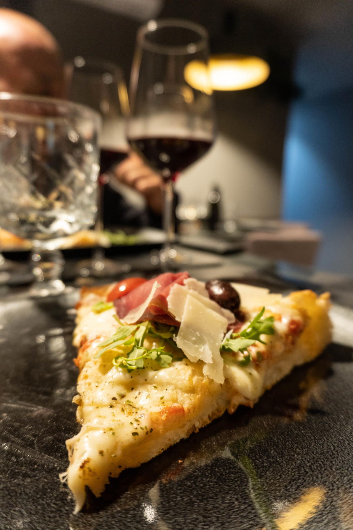 Uz pizzu Bresaolu koja sadrži goveđi pršut posluženo je vino Tempera, a uz Gurmansku pizzu smo završili uz Sweet Muscat.