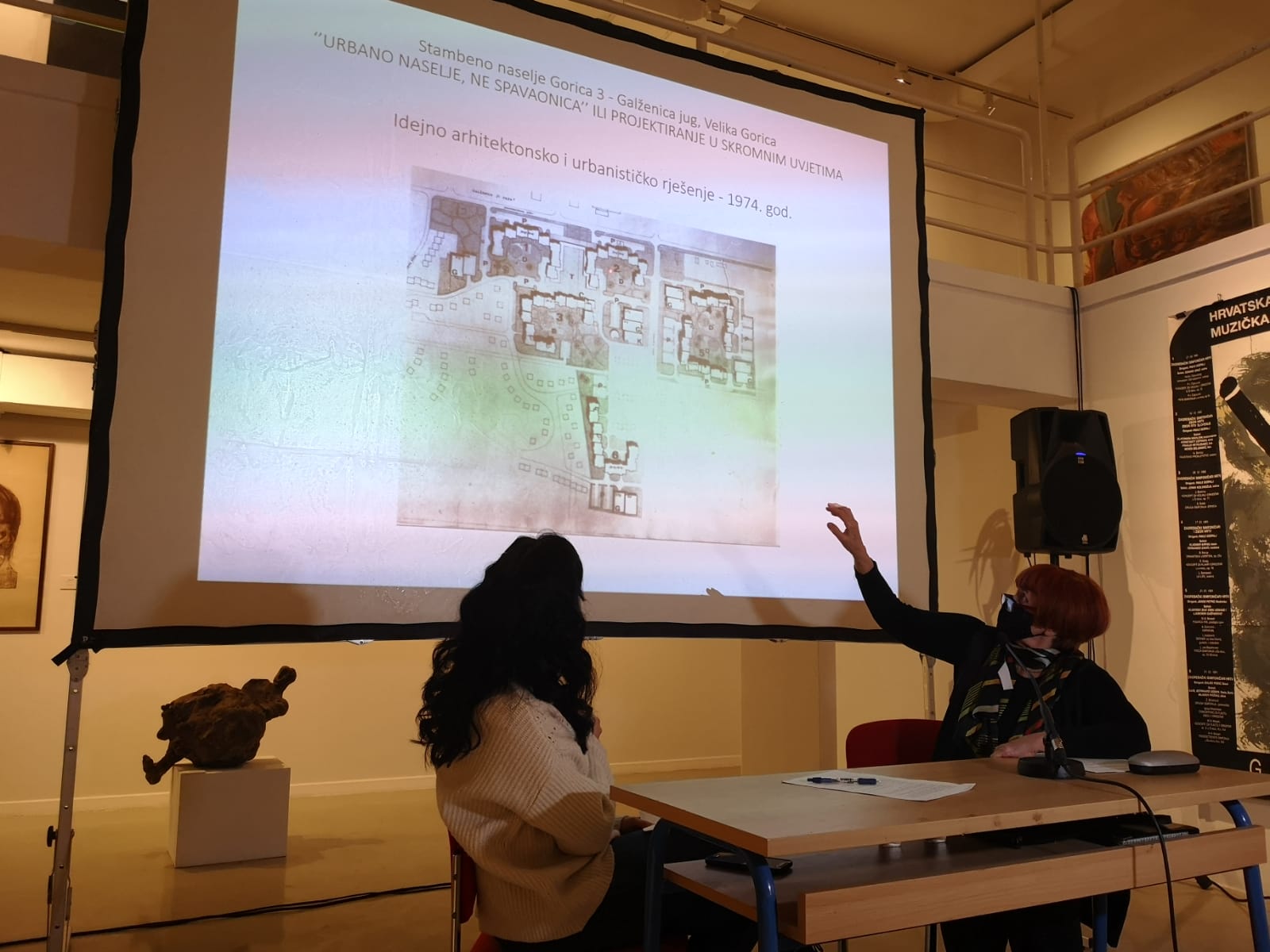 Predavanje arhitektice Hrvojke Paljan održano je online u petak, 10. prosinca. Arhitektica je na predavanju “Projektiranje u skromnim uvjetima” prezentirala arhitektonsko-urbanistički razvoj naselja Galženica, sa stanogradnjom, javnim i zelenim površinama te kulturnim sadržajima.
