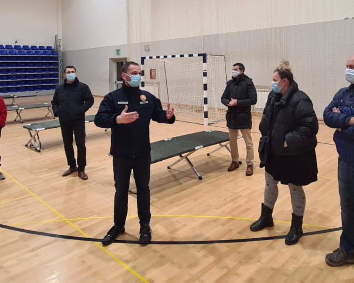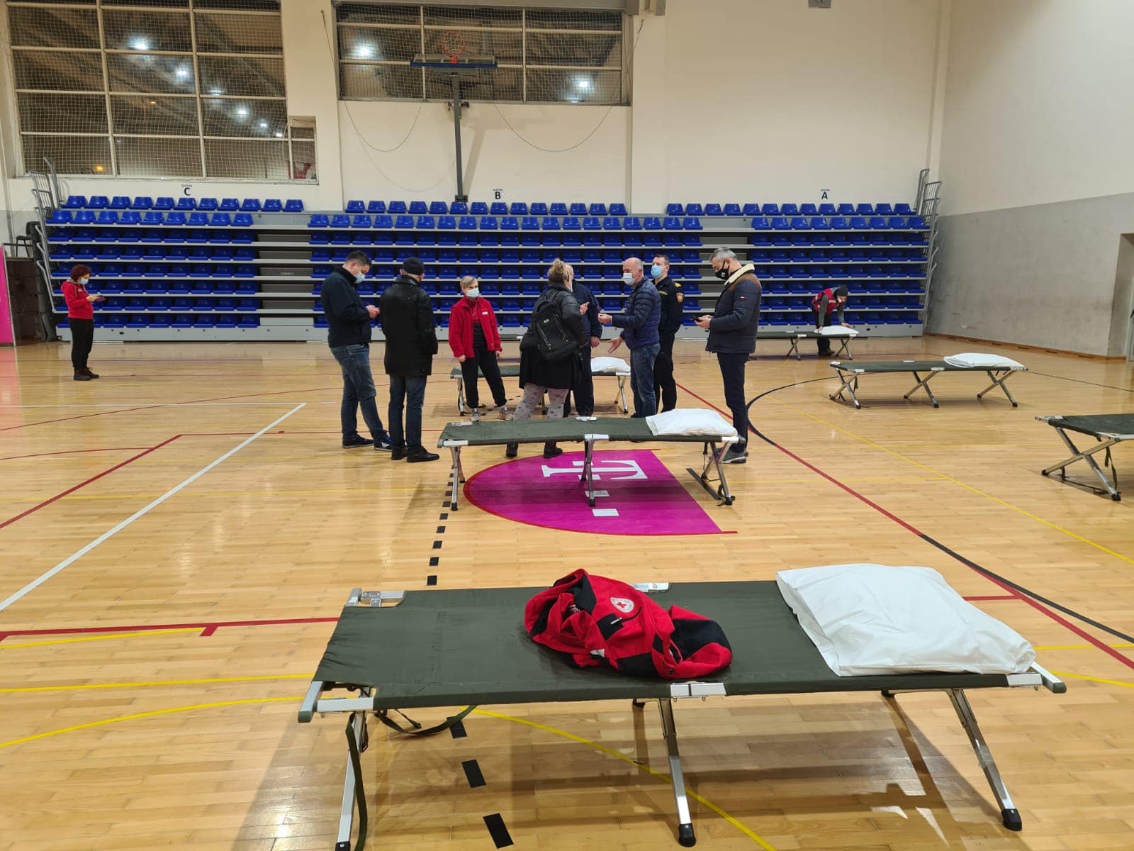 Gradski Crveni križ, vatrogasci i volonteri postavljaju ležajeve u gradskoj sportskoj dvorani za Petrinjce i ostale stanovnike iz najpogođenijih područja kojima treba osigurati smještaj.