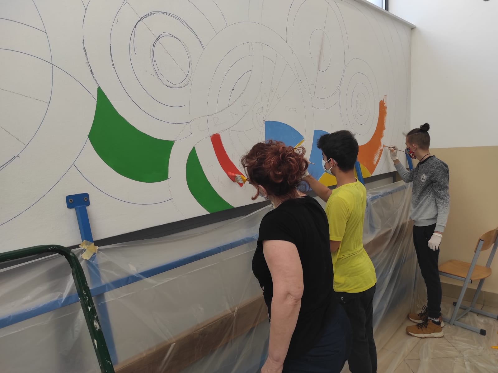 Početne obrise napravila je učiteljica likovne kulture, Božica Rebić te je zajedno s učenicima 8.c razreda (Borna P. i Patrik Ć.) napravila prve poteze kistom i tako je krenula šarena priča u vukovinskoj Osnovnoj školi. Nakon što su učenici i učiteljica obojali plohe i morali krenuti na nastavu, stručne suradnice Marta, Ana i Bernarda pripomogle su s detaljima i nastavile rad kako bi sve bilo spremno do povratka svih učenika u školu.