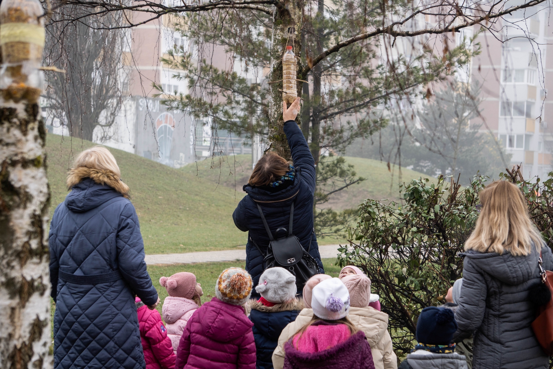 Podržavajući dječje logičko zaključivanje, njegujući i podržavajući njihovu empatiju za životinjski svijet koji ih okružuje te uvažavajući njihove ideje i zamisli, iz Cicibana su se obratili resornom odjelu Grada Velike Gorice i tako dobili dopuštenje da zajedno s djecom postave hranilice, u prostoru oko jezerca na Trgu dr. Franje Tuđmana, izrađene od recikliranog materijala za ptice.