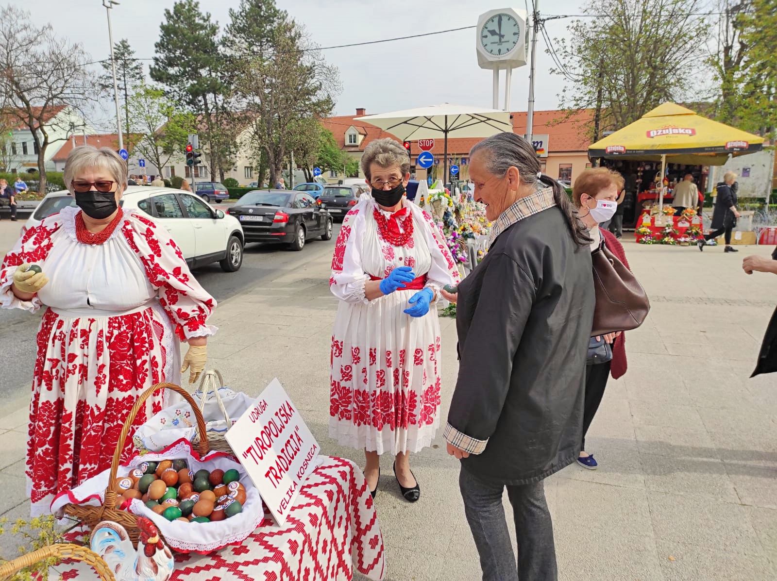 Članovi Udruge Turopoljska tradicija iz Kosnice danas su na platou ispred tržnog centra u Velikoj Gorici odlučili građanima pokazati malo prave domaće uskršnje tradicije. Kako su najavili, obukli su narodne nošnje, pripremili košaru sa hranom po starinski te prikazivali građanima kako se nekada pripremala košara, koja se hrana stavljala u košaru za blagoslov jela te kakvi su bili običaji.