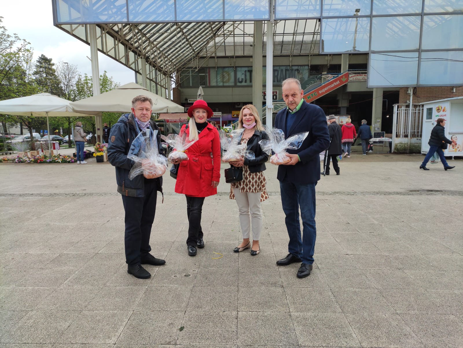 Kandidat za gradonačelnika Velike Gorice Ivo Jelušić, kandidatkinja za njegovu zamjenicu Brankica Žugaj, sa stranačkim kolegama iz Gradske organizacije SDP-a Velike Gorice i predstavnicima Foruma mladih SDP-a Velika Gorica u subotu su građanima podijelili uskrsne pince. Iskoristili su subotnje prijepodne kako bi se podružili s građanima te im tom prilikom, uz tradicionalnu uskrsnu poslasticu uputili i čestitku.